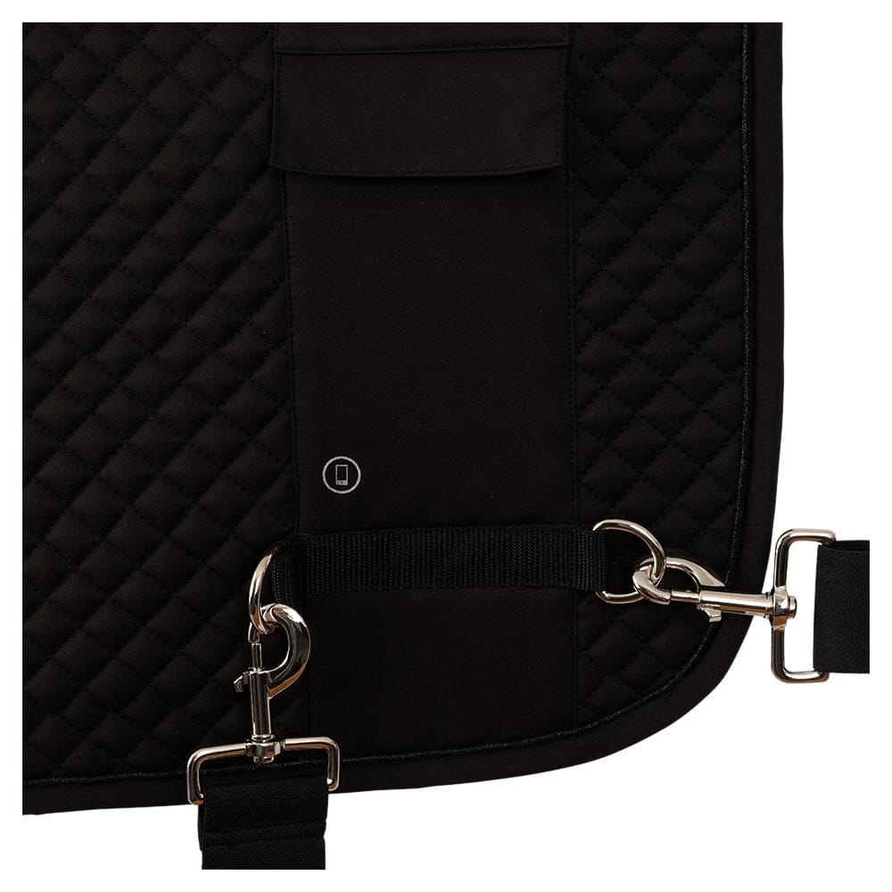 Pad treningowy BR Alaska ma unikalną konstrukcję z elastycznymi paskami, które pomagają koniowi w prawidłowym ruchu. Ponadto ćwiczone są również mięśnie pleców i brzucha. Elastyczne paski są odpinane i regulowane, aby zapewnić idealne dopasowanie. Dzięki karabińczykom możesz łatwo przymocować paski. Na czapraku znajduje się kieszonka na telefon, dzięki czemu możesz śledzić dane treningowe.