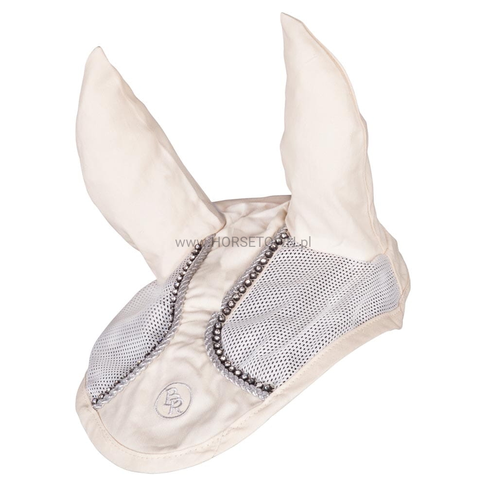 Wyjątkowo eleganckie nauszniki ozdobione dwoma rzędami cyrkonii, srebrną bizą oraz haftem z logo BR. Posiadają wstawki z poliestrowej siateczki, które zapewniają optymalną wentylację.