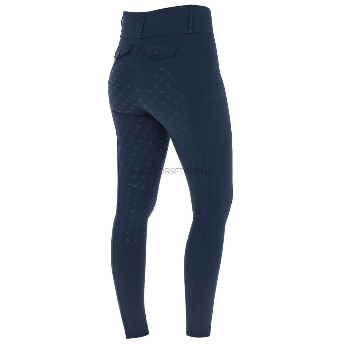 Idealne na jesienne i zimowe treningi. Wykonane z wysokiej jakości wytrzymałej termicznej dzianiny. Bi-elastyczne, doskonale dopasowują się do sylwetki i podążają za ruchem jeźdźca. Podszyte miękkim, ciepłym i bardzo miłym dla ciała mikropolarem, który zapewnia przyjemne uczucie ciepła na skórze. Oddychająca tkanina szybko odprowadza wilgoć z ciała, co daje uczucie świeżości. Wyposażone w pojemną kieszeń na telefon na obu udach. Stan wykończony szerokim, wygodnym ściągaczem - nie uciska i świetnie dopasowuje się do sylwetki. Pełny, silikonowy lej doskonale trzyma w siodle i pomaga zachować poprawną sylwetkę podczas treningu. Nogawki zakończone klasycznie, dół ładnie przylega do kostki i doskonale układa się pod sztybletami czy oficerkami. Ozdobne logo producenta, wyszyte na lewej kieszeni. Z tyłu klapki imitujące kieszenie dodają wyjatkowości temu modelowi.