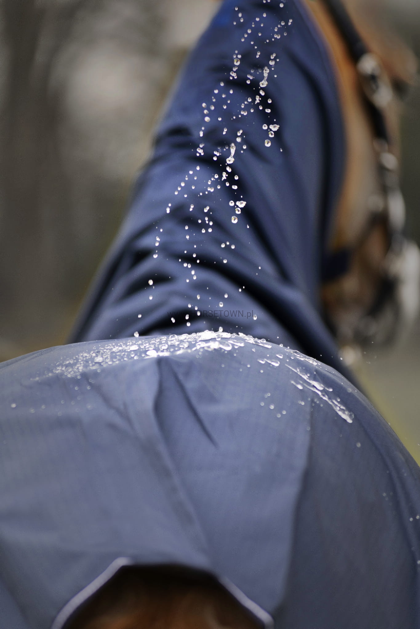 - Equiline Corby to derka przeciwdeszczowa skrojona tak, aby można było w niej jeździć. Otwory na strzemiona pozwalają na wyciągnięcie ich na zewnątrz. Jest niezastąpiona podczas deszczowych treningów, pozwala rozprężyć się w czasie deszczu.