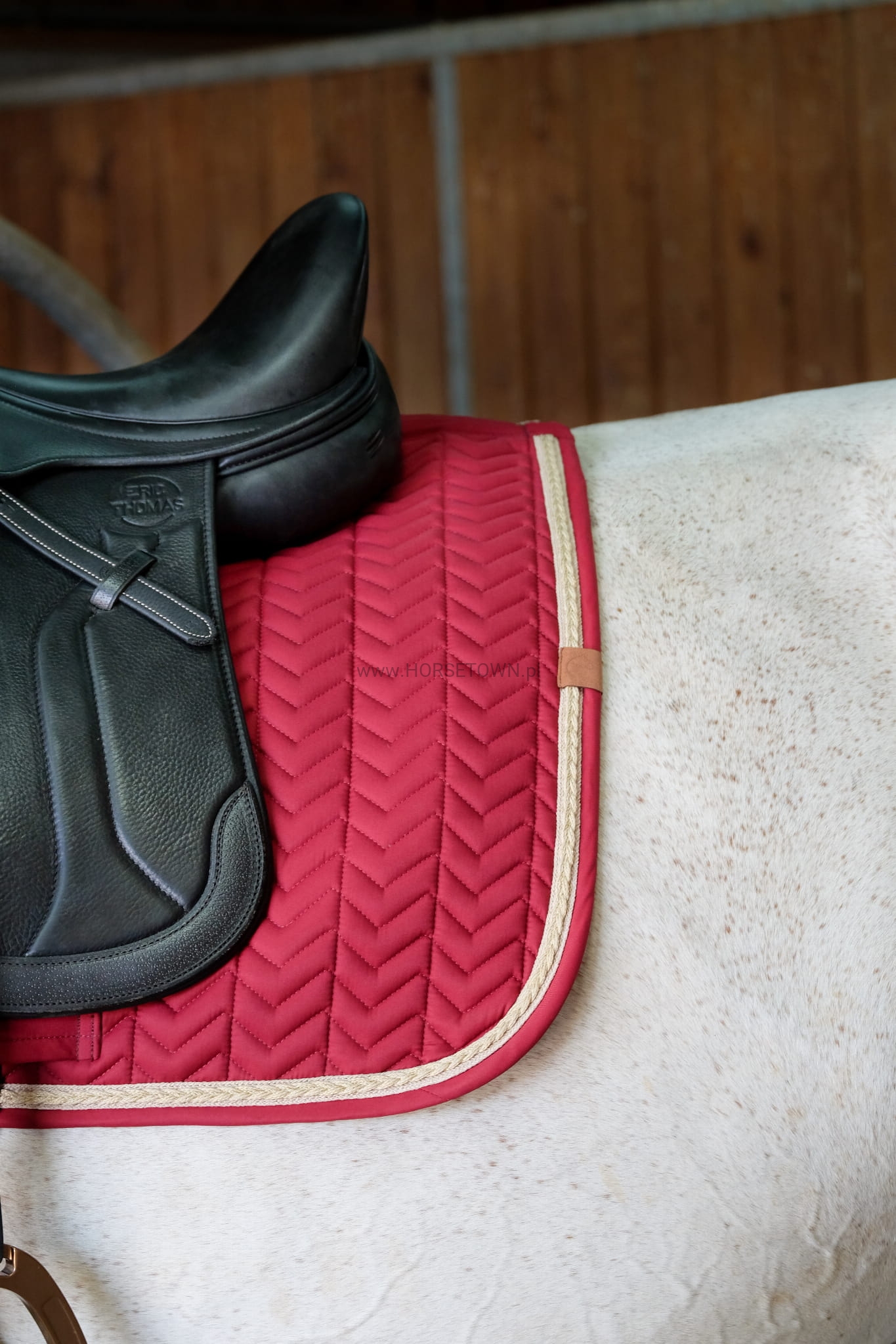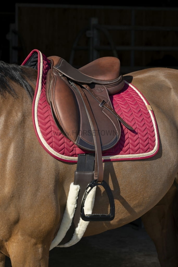 Miękki czaprak 100% poliester z wypełnieniem 200g/m2 i wypełnieniem z pianki o grubości 8mm. Ozdobiona warkoczem.