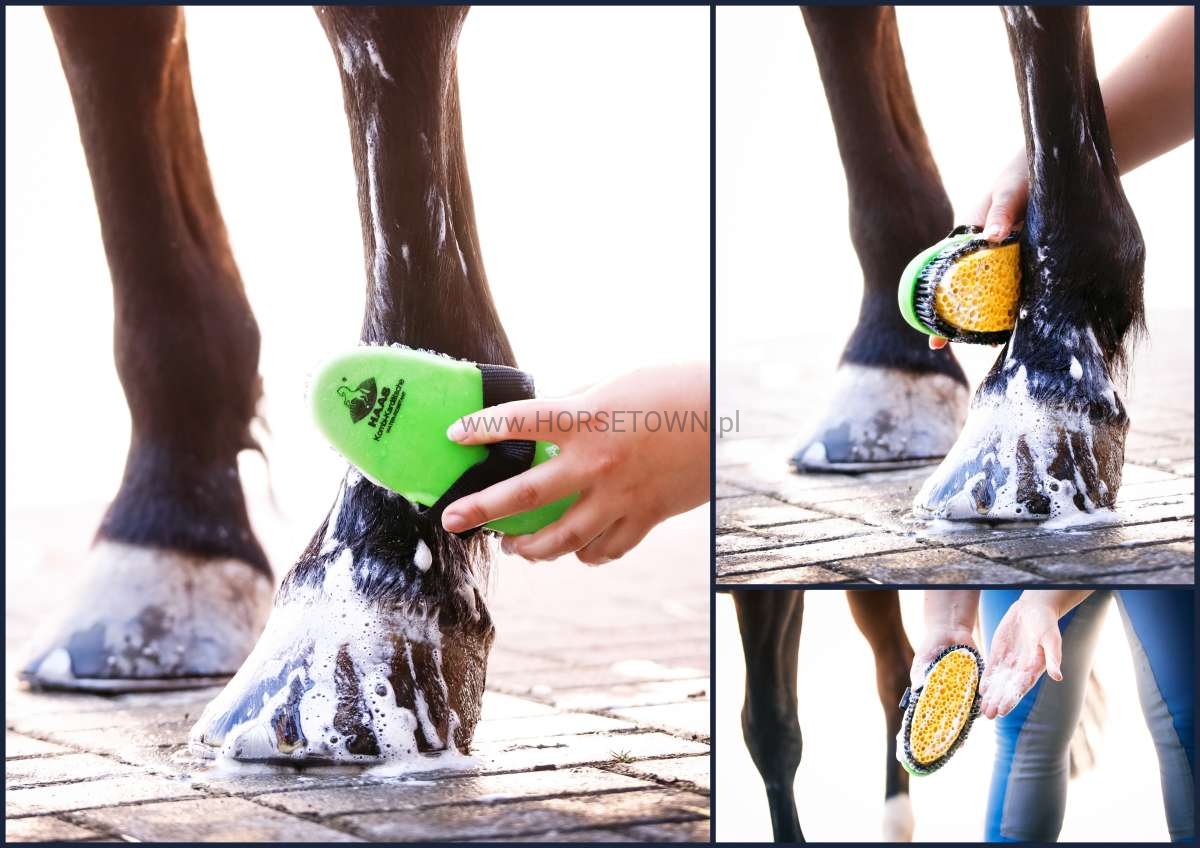 Dzień kąpieli? Z tą szczotką będzie dokładniej niż kiedykolwiek! Wystarczy nanieść kilka kropel szamponu na odporną na ścieranie gąbkę umieszczoną w środku, a następnie lekko ją nacisnąć, by uzyskać obfitą pianę. Mocne, plastikowe włosie rozmieszczone na brzegach szczotki skutecznie wydobywa brud i kurz nawet z głębszych warstw sierści, pozostawiając konia idealnie czystego.