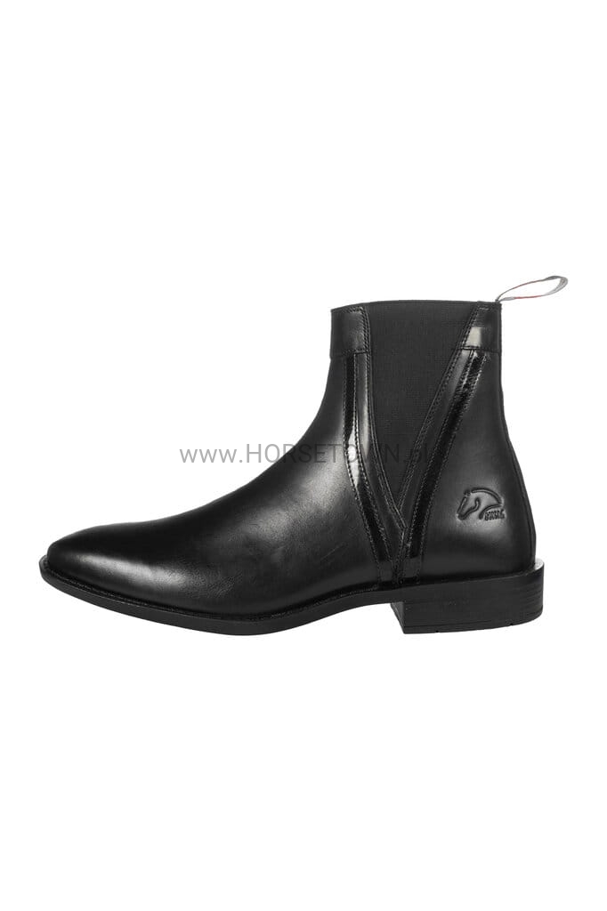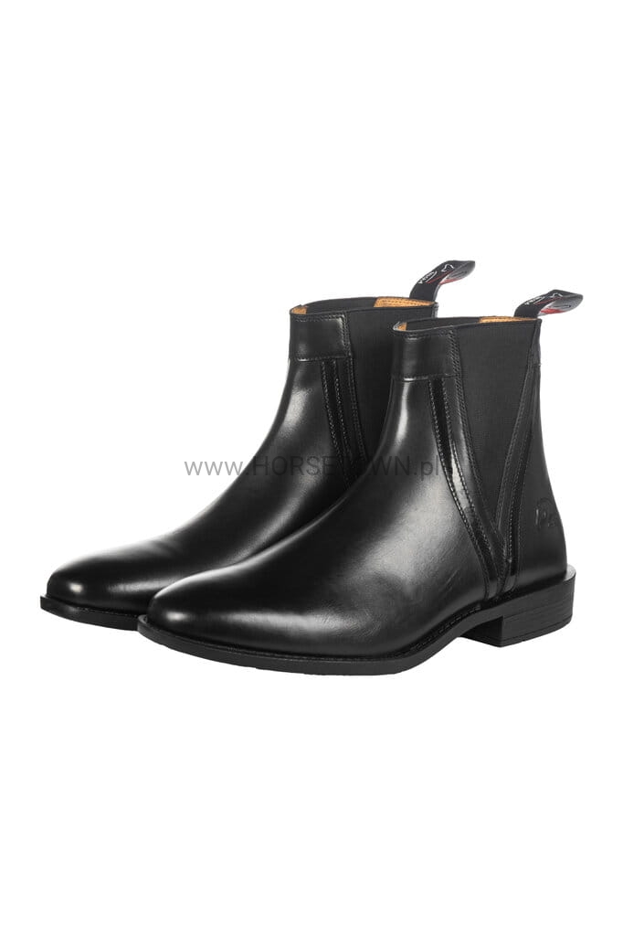 Dzięki podwójnym elastycznym wstawkom oraz praktycznej pętelce ułatwiającej zakładanie, buty zapewniają idealne dopasowanie i maksymalny komfort noszenia. Antypoślizgowa gumowa podeszwa z obcasem gwarantuje pewność kroku i stabilność zarówno w stajni, jak i na co dzień.