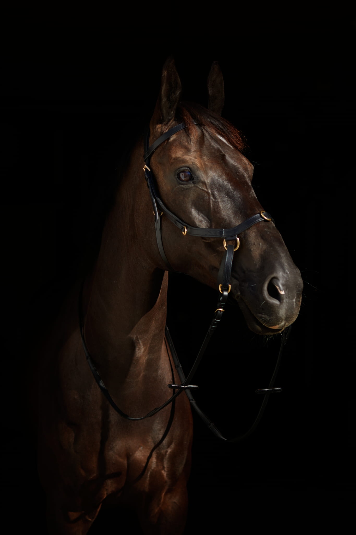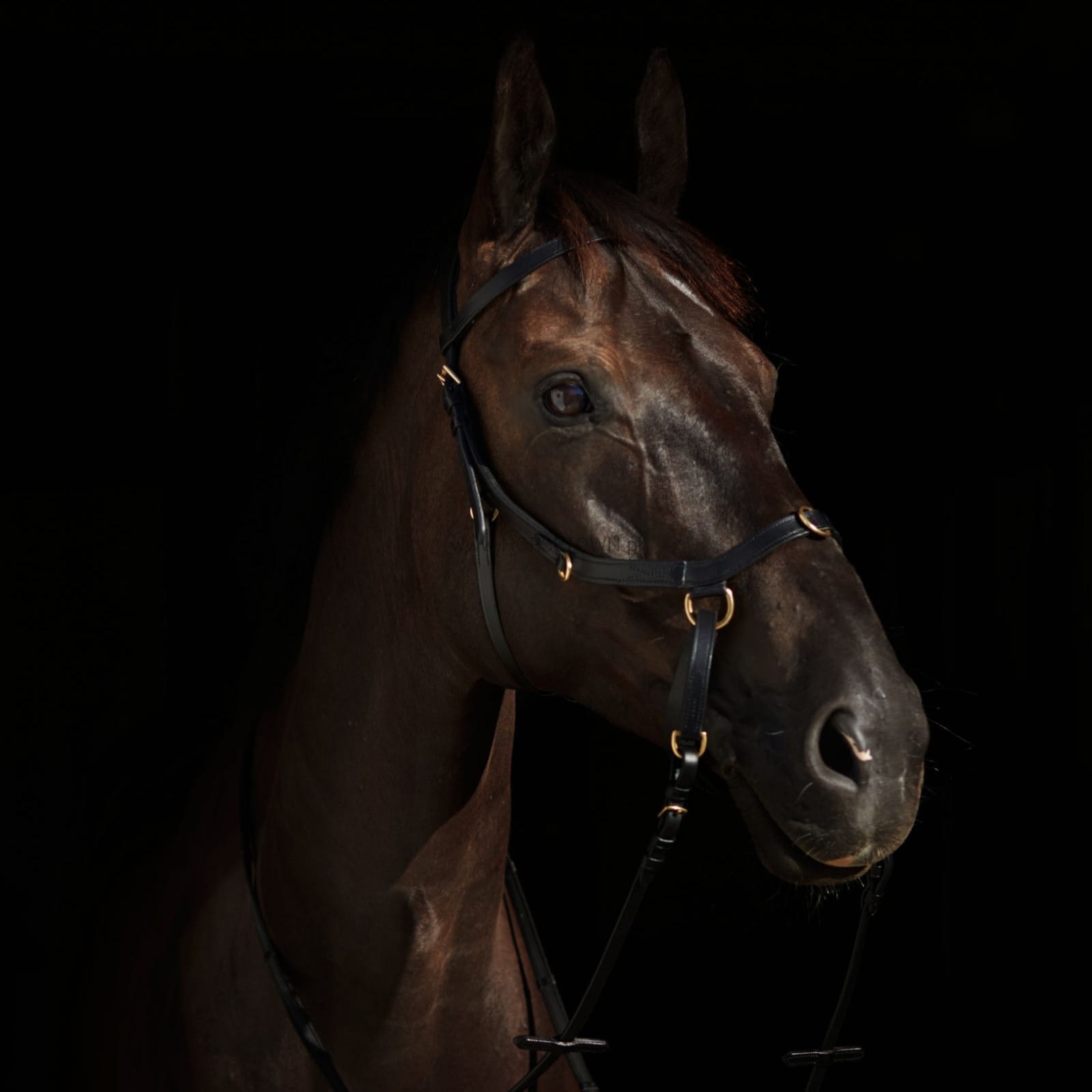 Ogłowie zostało wykonane z miękkiej olejowanej skóry z ergonomicznym wykończeniem nagłówka.