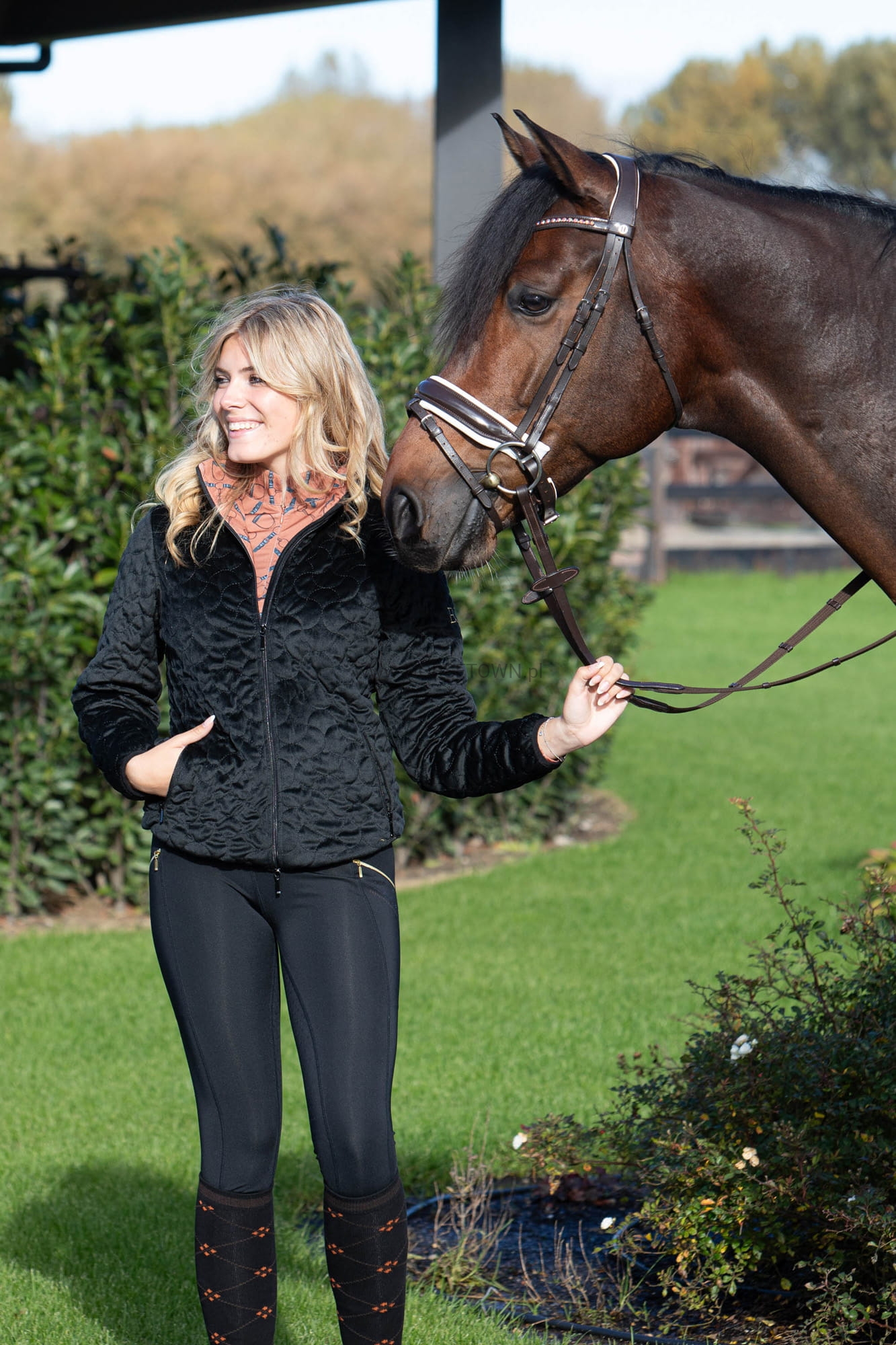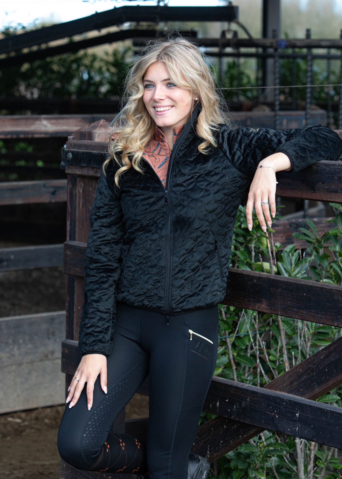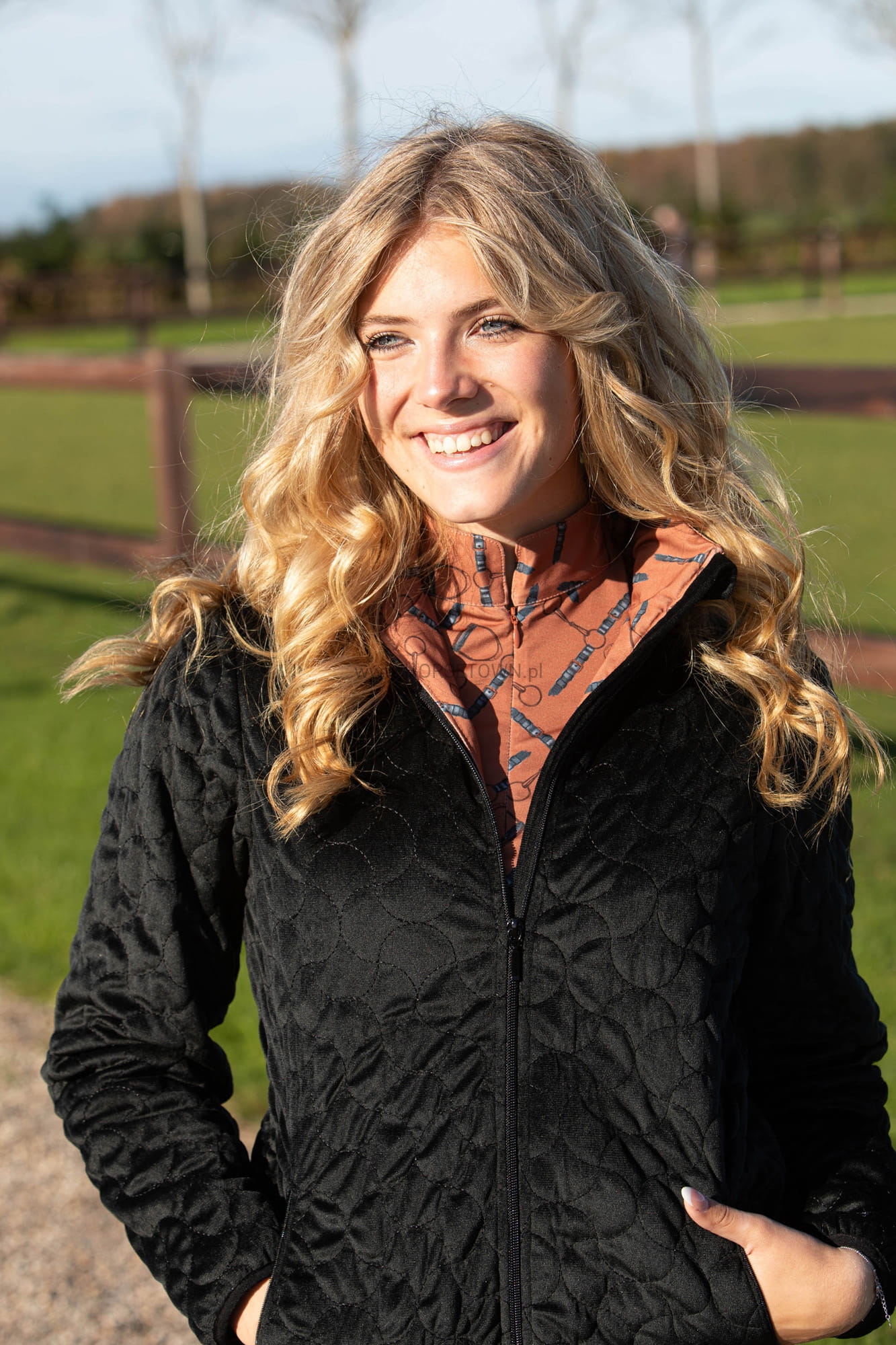 Kurtka typu bomber z aksamitu z pikowaniem na całej powierzchni, podszewka z nadrukiem na całej powierzchni pasująca do koszuli La Toussuire, dwie kieszenie zapinane na zamek i logo EQS wyszyte na rękawie.