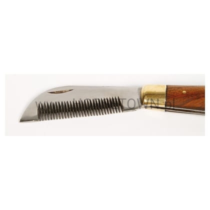 Praktyczny nóż do bezbolesnego przerzedzania grzywy. Nóż jest składany i ma drewniany uchwyt.