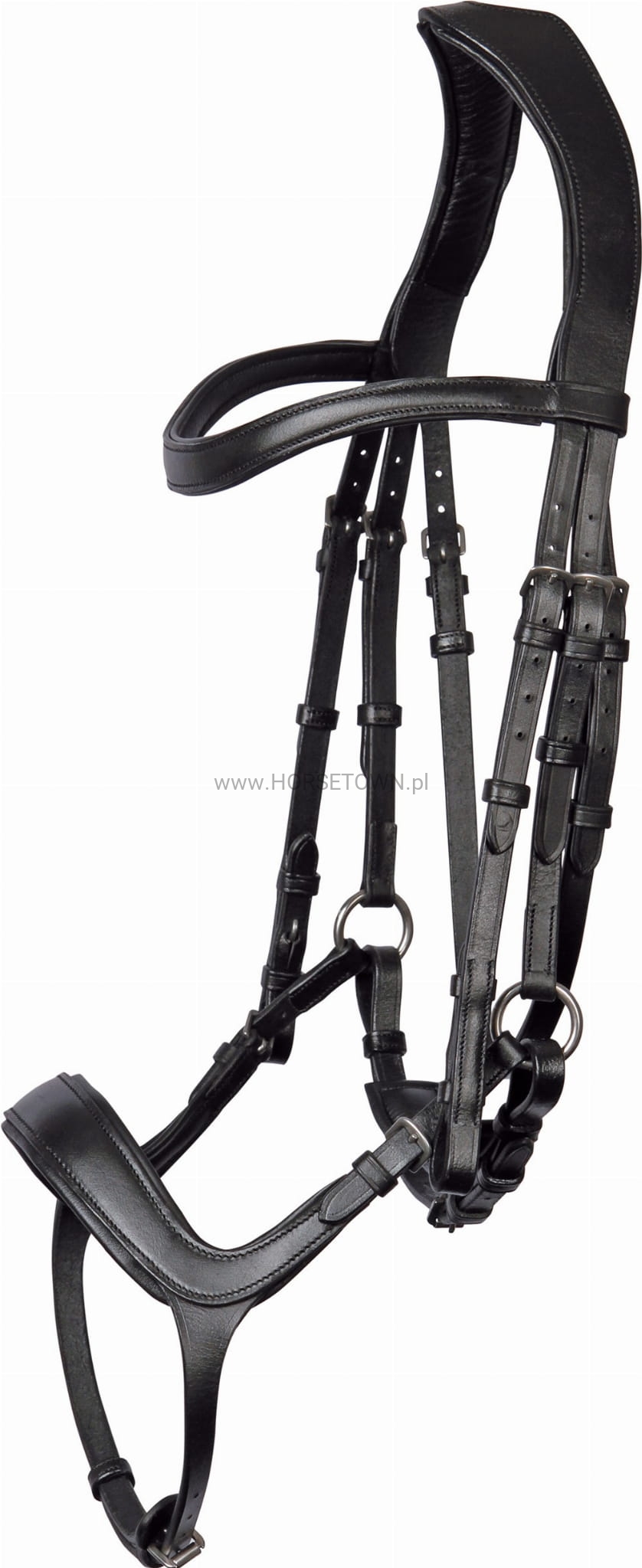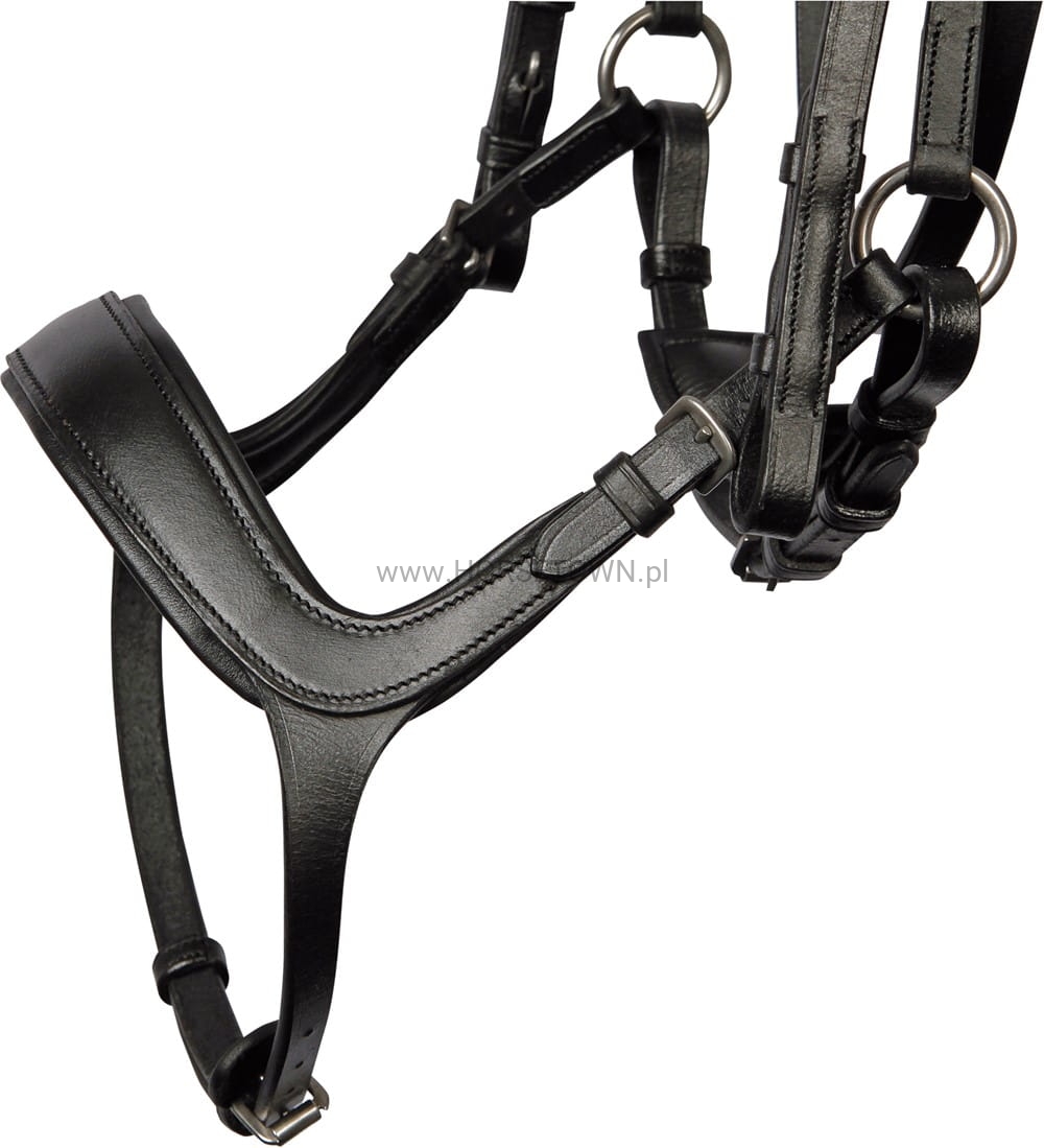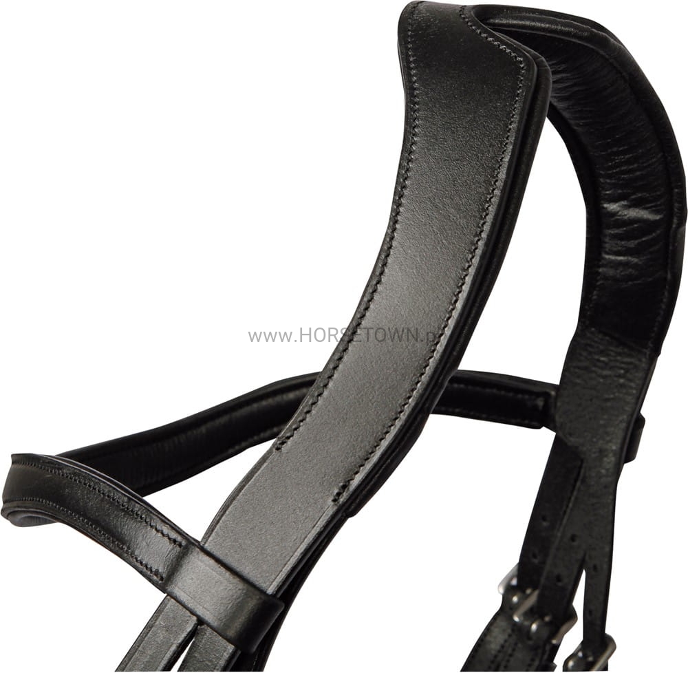 W zestawie wiszący naczółek. Przyczynia się to do zmniejszenia nacisku na uszy konia.