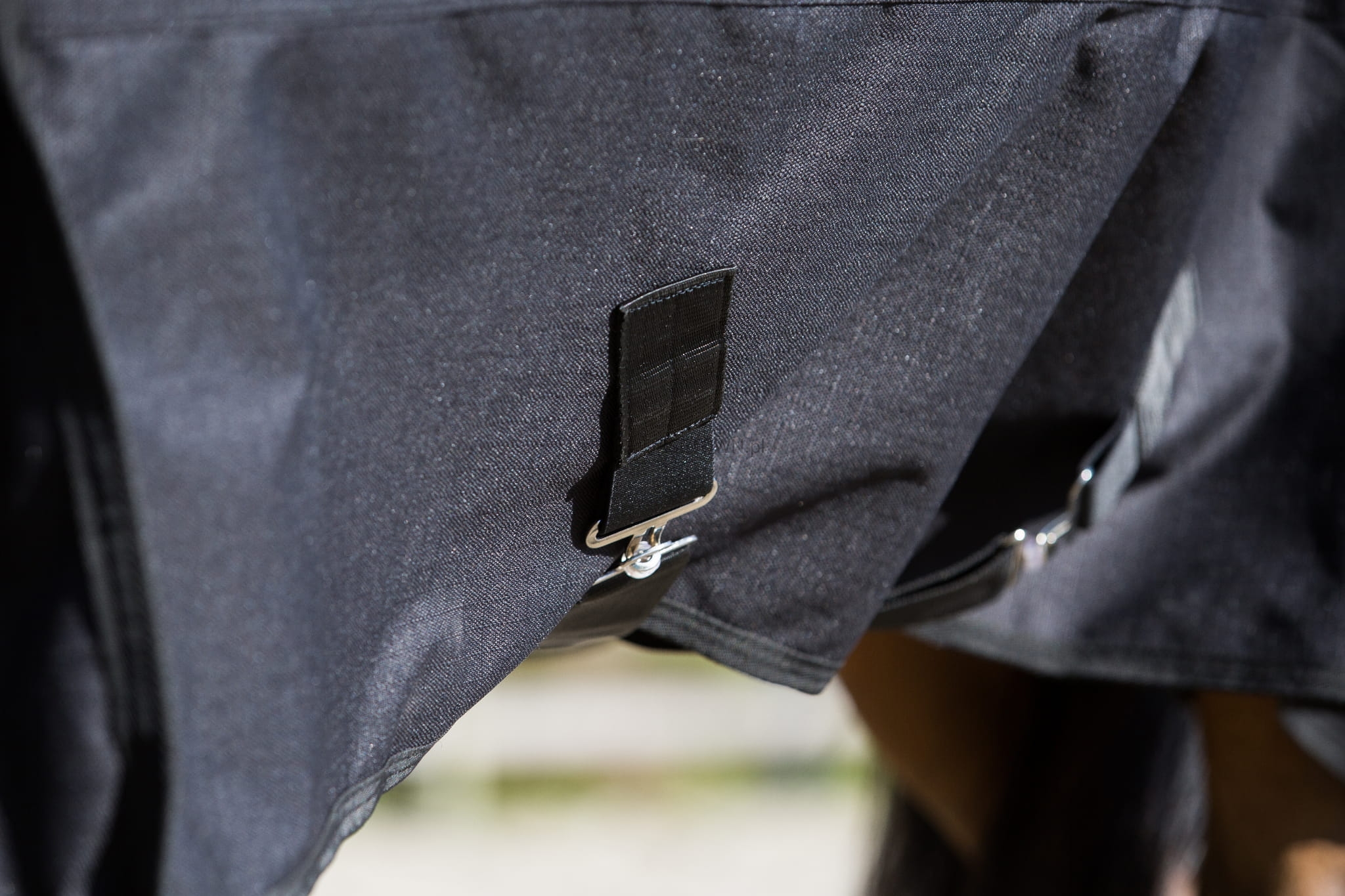 Posiada rozcięcia na łopatkach, pasy krzyżowe pod brzuchem, dużą klapę na ogon oraz elastyczne paski na zadnie nogi.