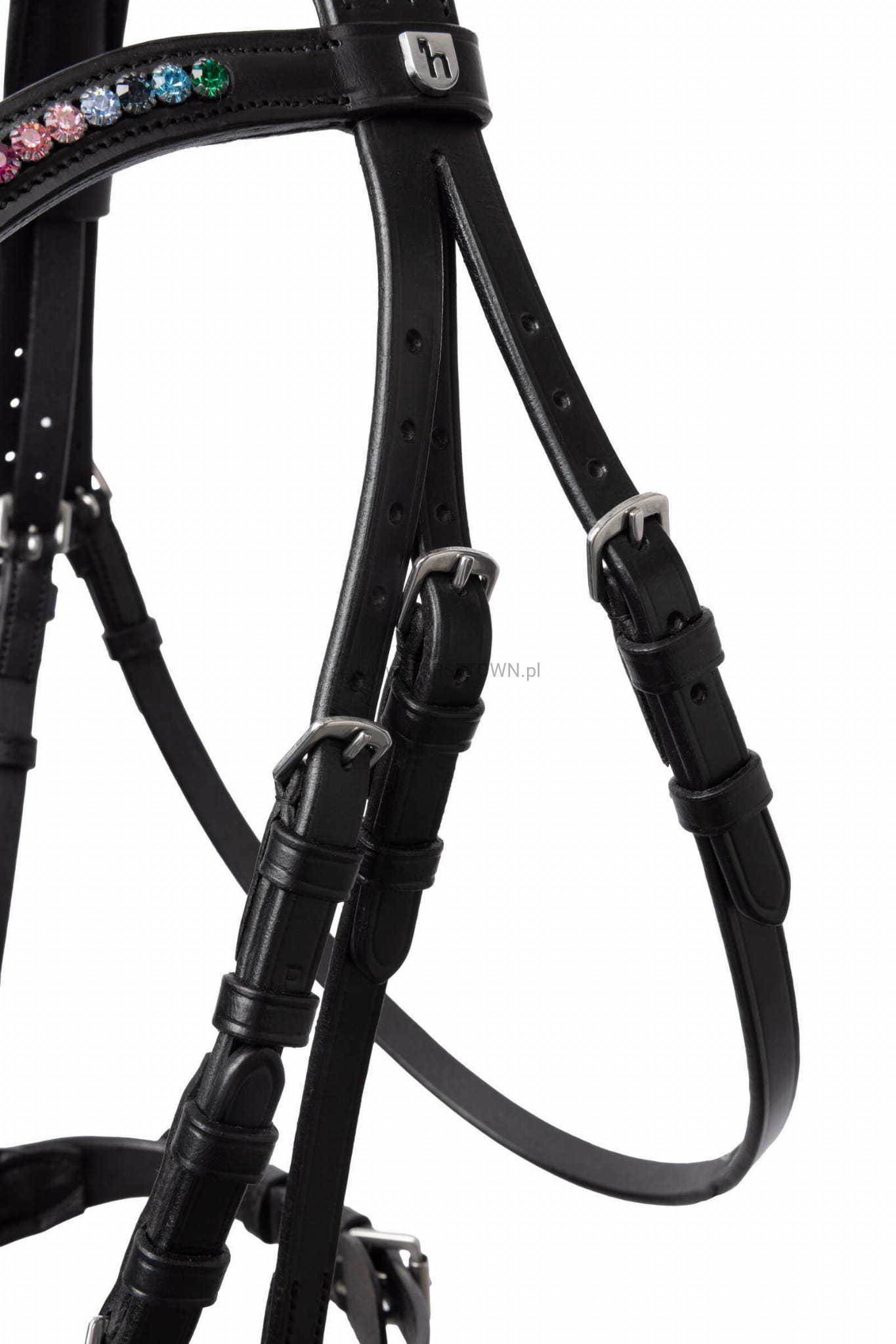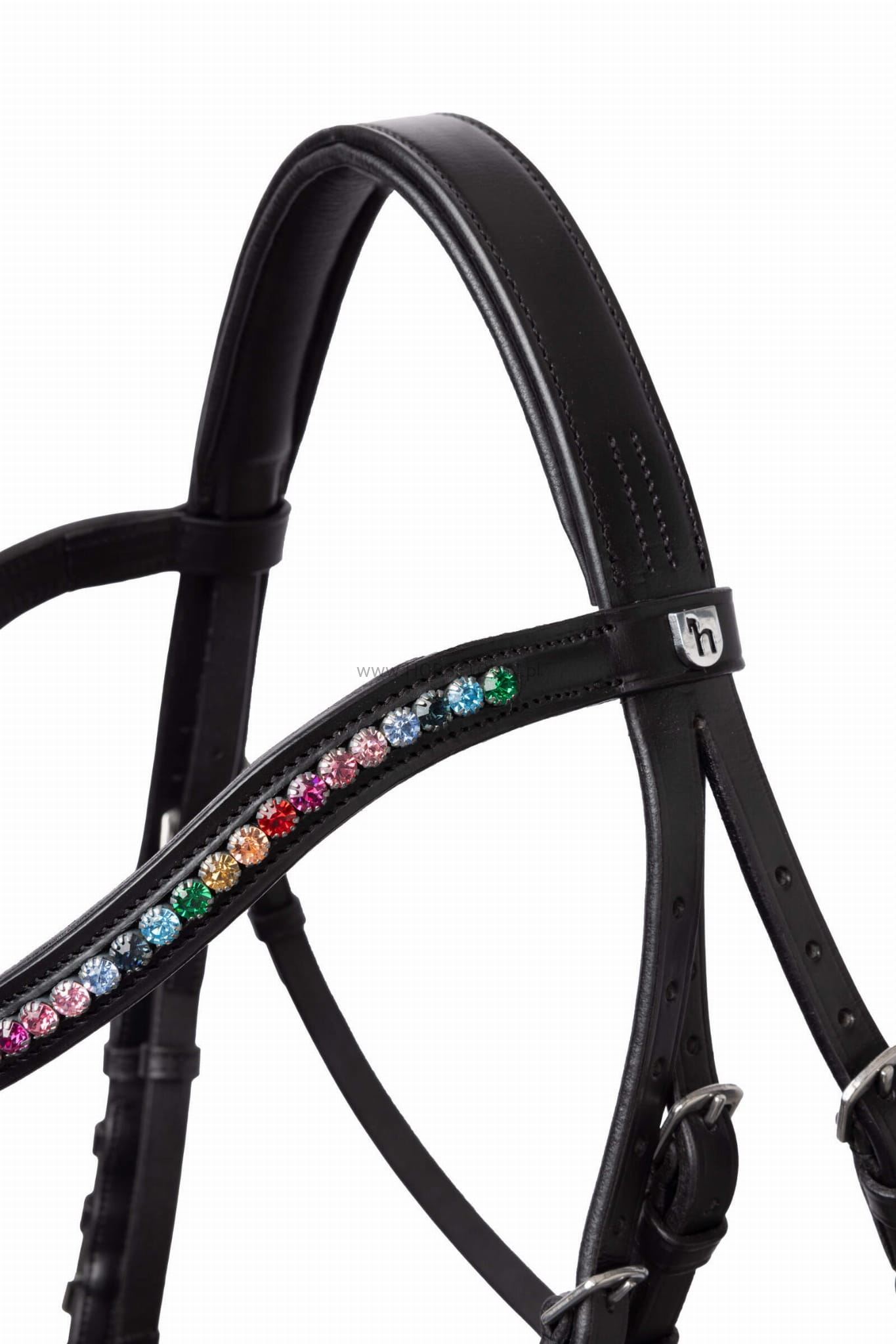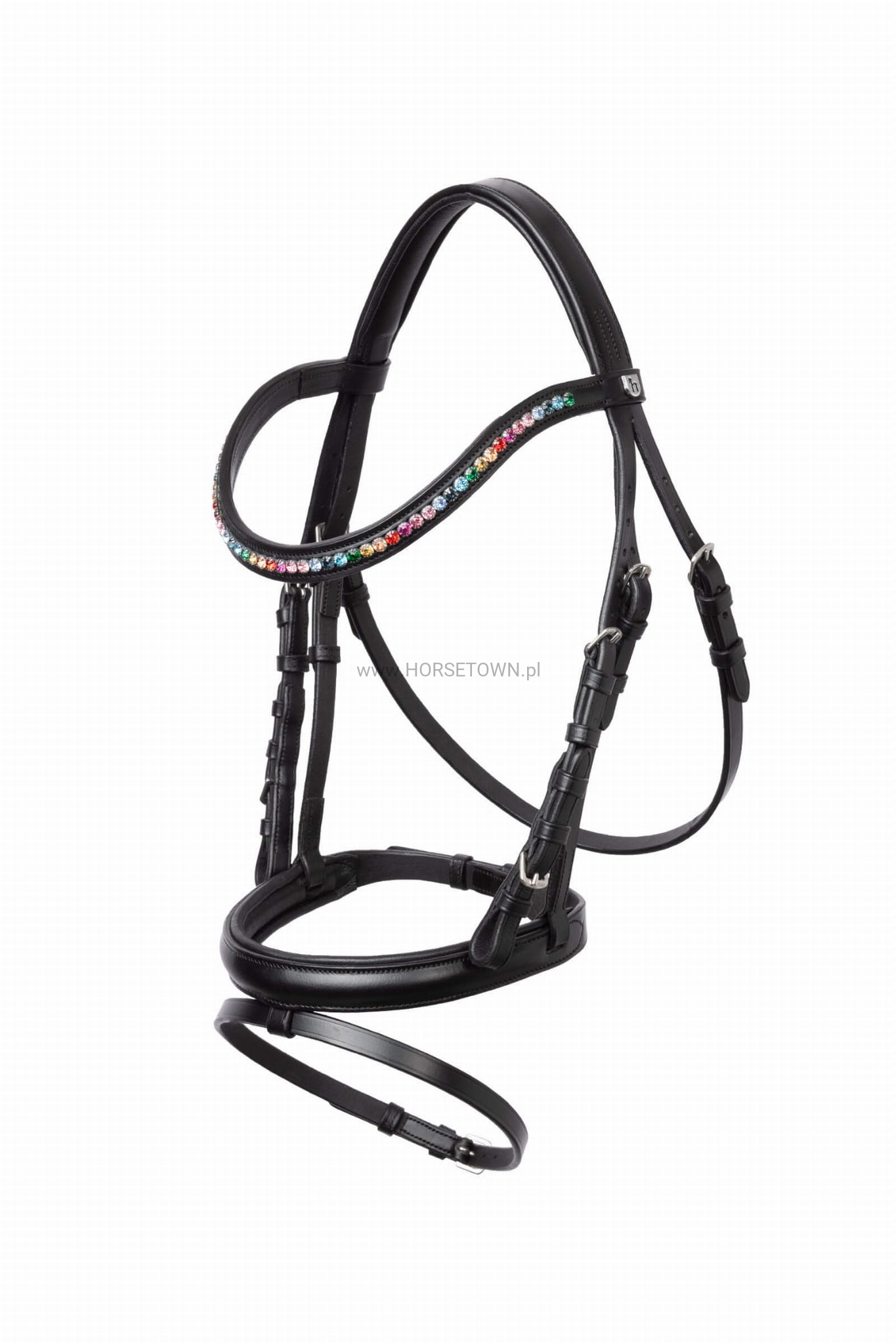 Odkryj klasyczny model, który doskonale łączy styl i komfort. Ten ponadczasowy projekt wyróżnia się kolorowym, tęczowym naczółkiem, który nadaje Twojemu koniowi wyjątkowy wygląd. Naczółek jest miękko wyściełany, aby zapewnić optymalny komfort i zapobiec powstawaniu nieprzyjemnych punktów nacisku. Wysokiej jakości metalowe okucia zapewniają trwałość i doskonale komponują się z eleganckim designem.