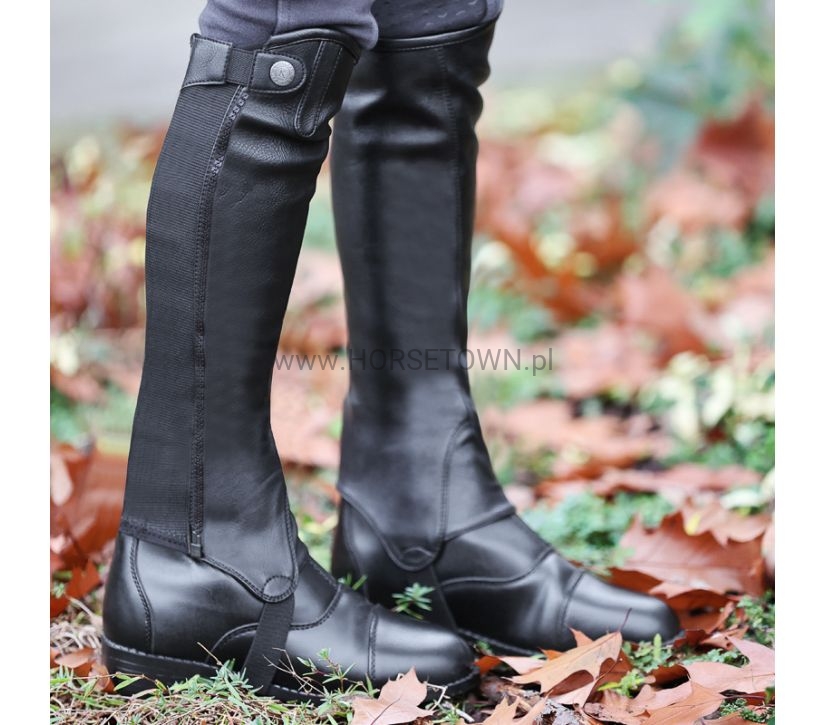 Czapsy „Combi” wykonane są z imitacji skóry, co sprawia, że są bardzo łatwe w pielęgnacji. Elastyczna strefa po zewnętrznej stronie łydki zapewnia idealne dopasowanie. Czapsy są zamykane od dołu do góry zamkiem błyskawicznym oraz dodatkowym zatrzaskiem.