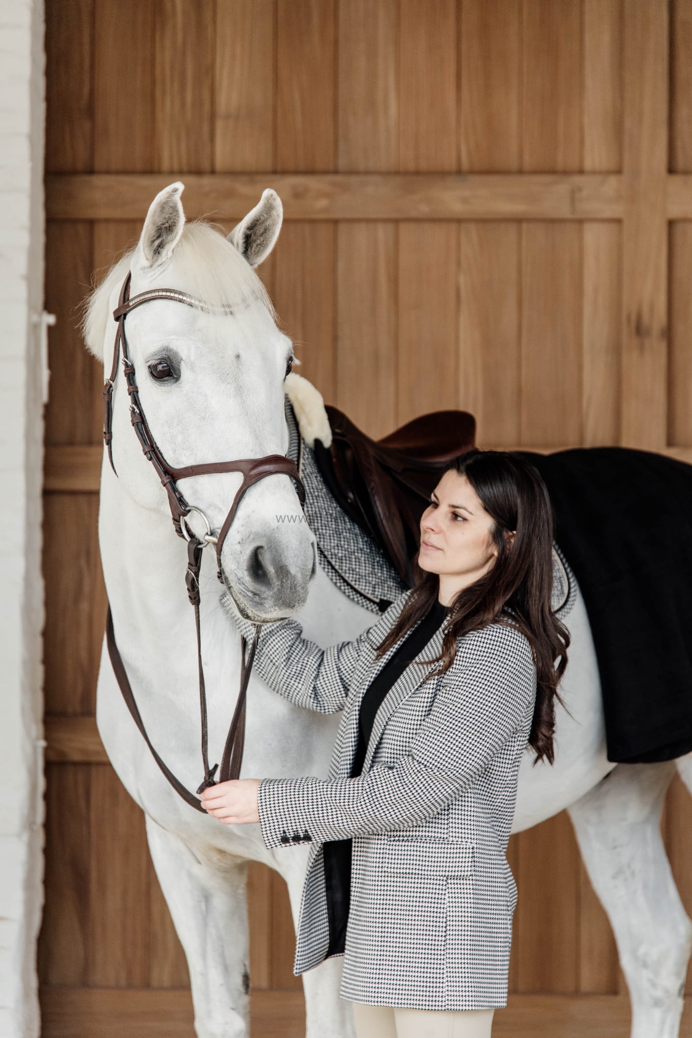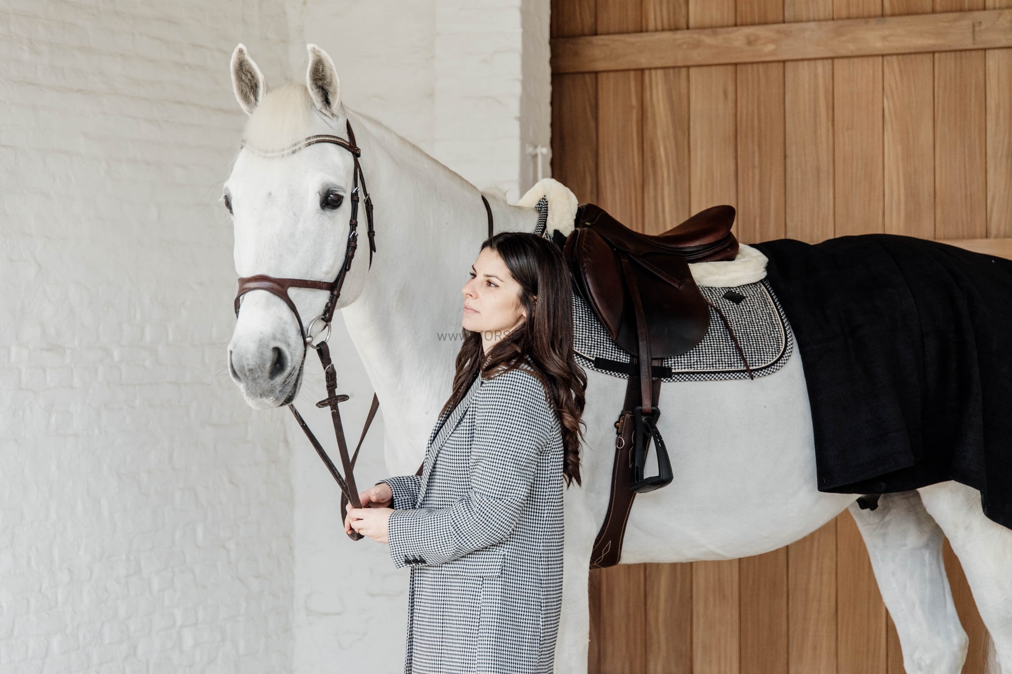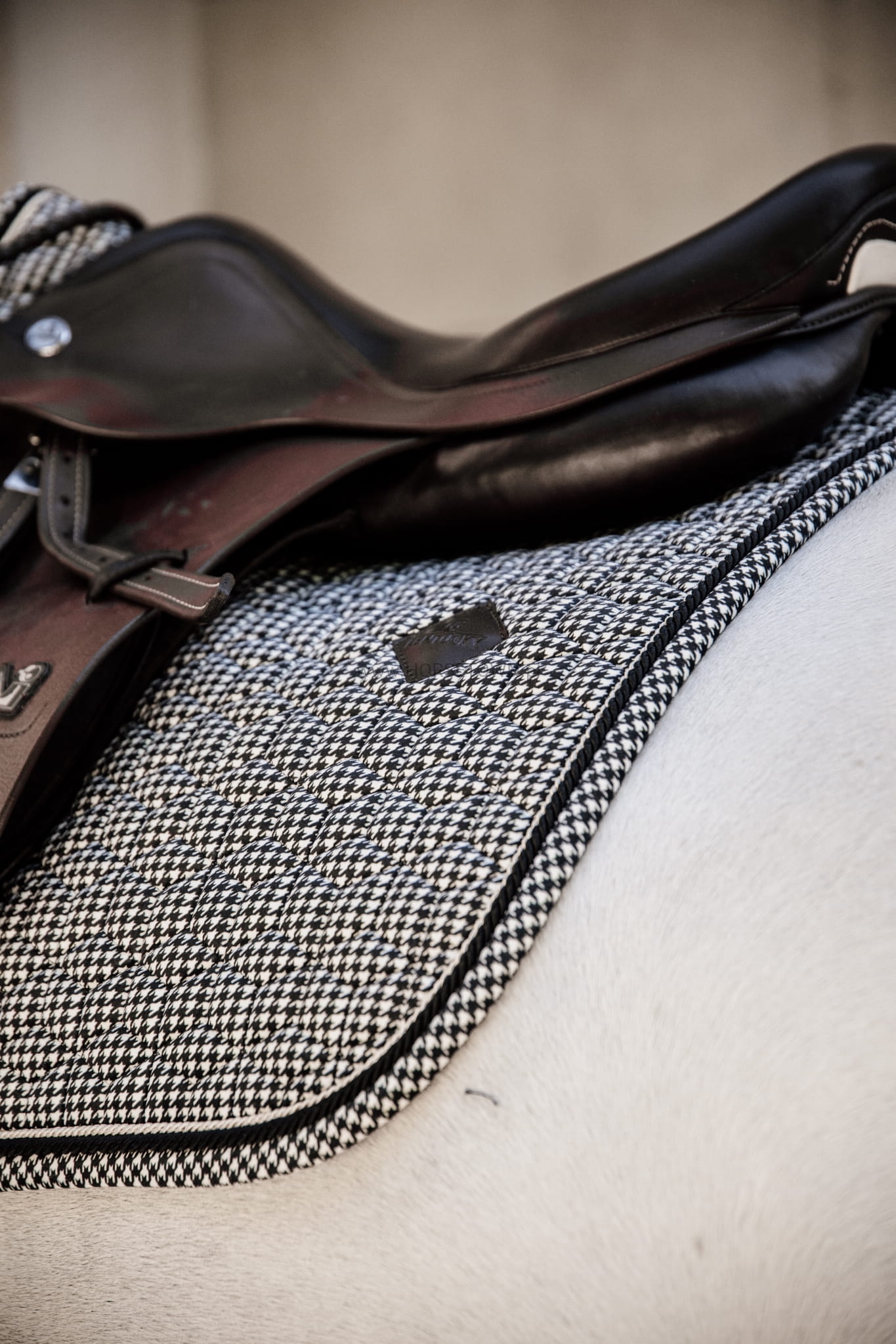 Klasyczny czaprak Kentucky Pied de Poule w ponadczasowa krateczkę.