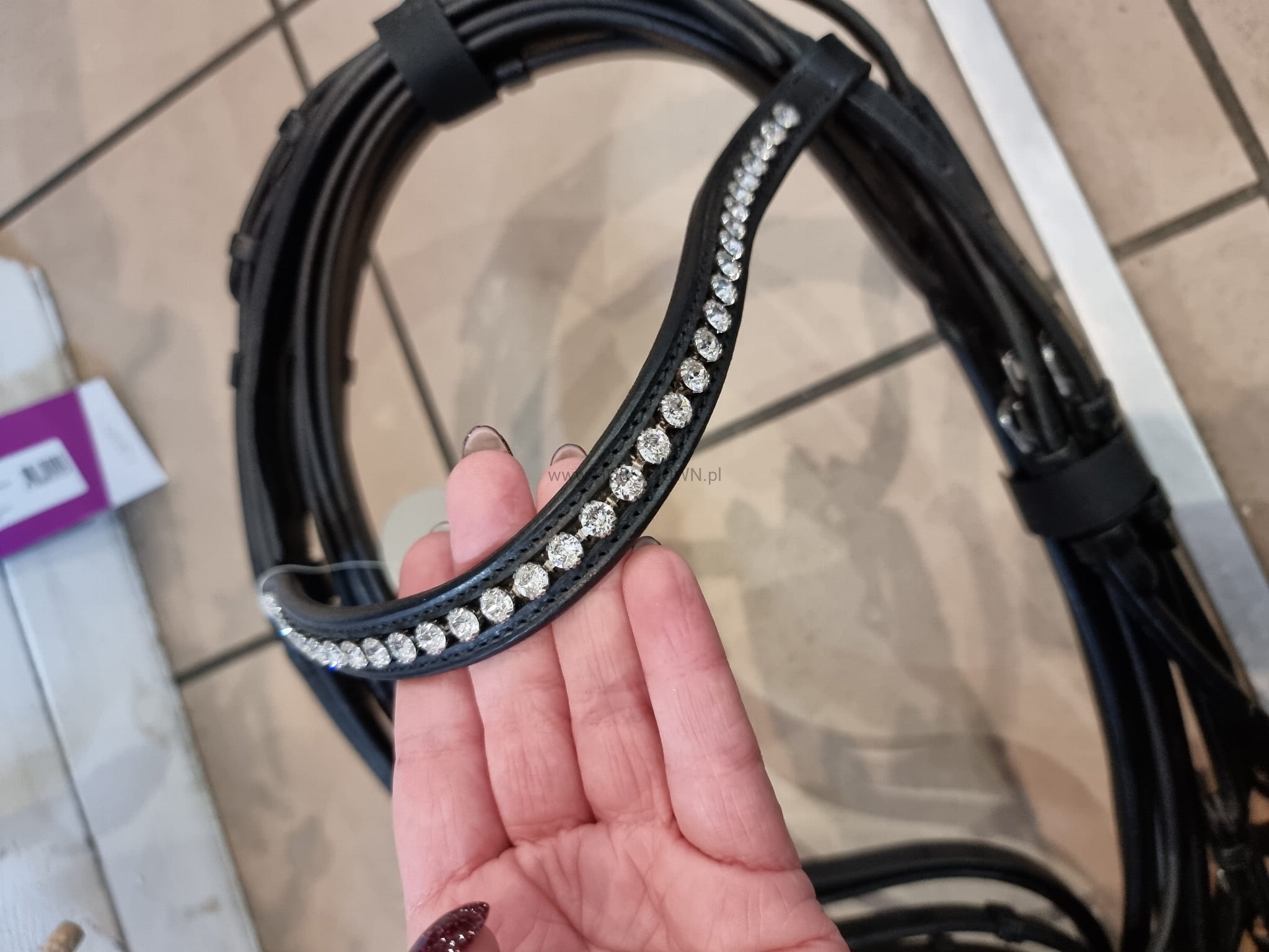- opadający naczółek z dużymi białymi cyrkoniami