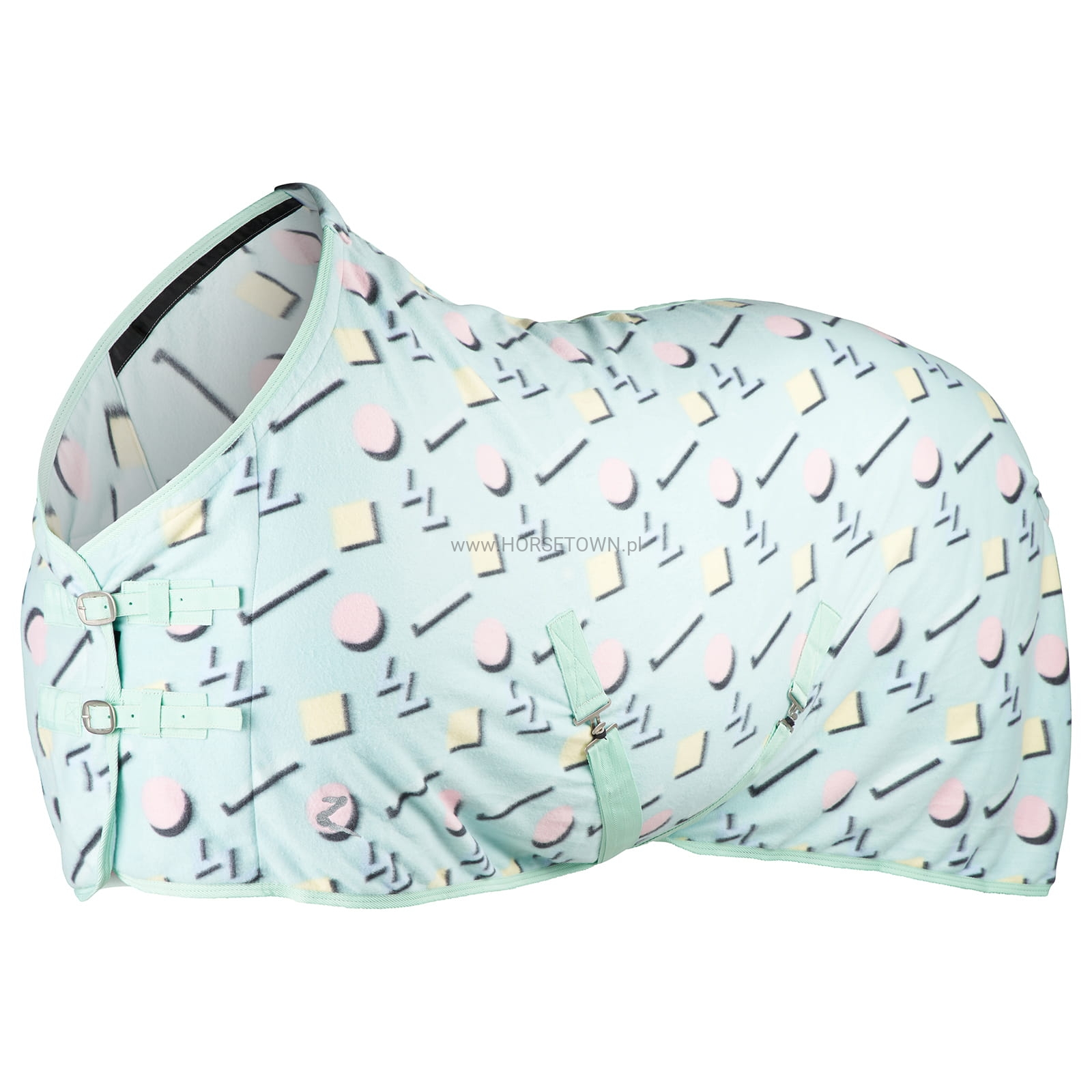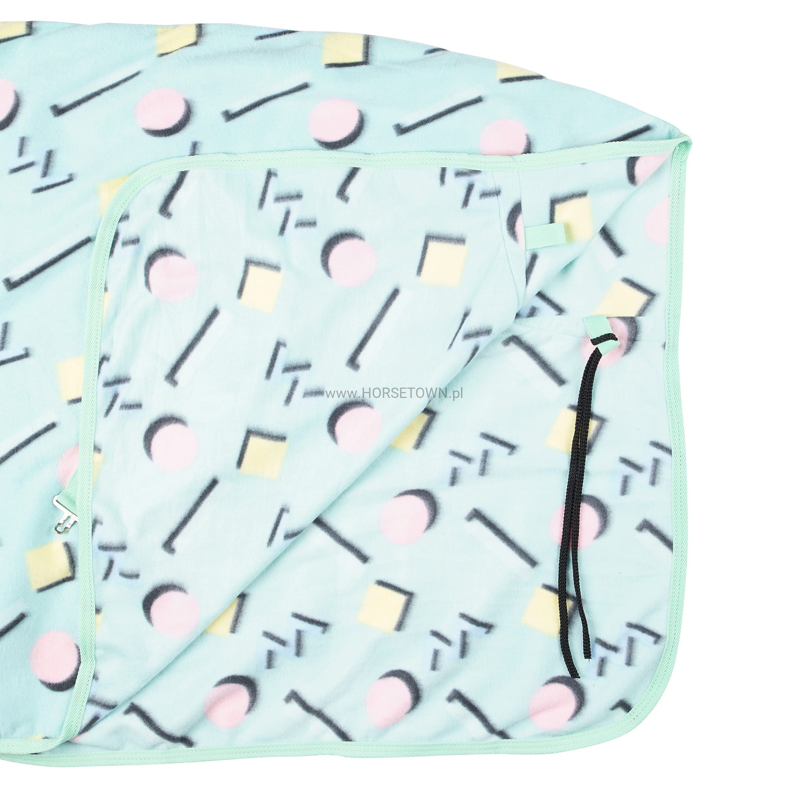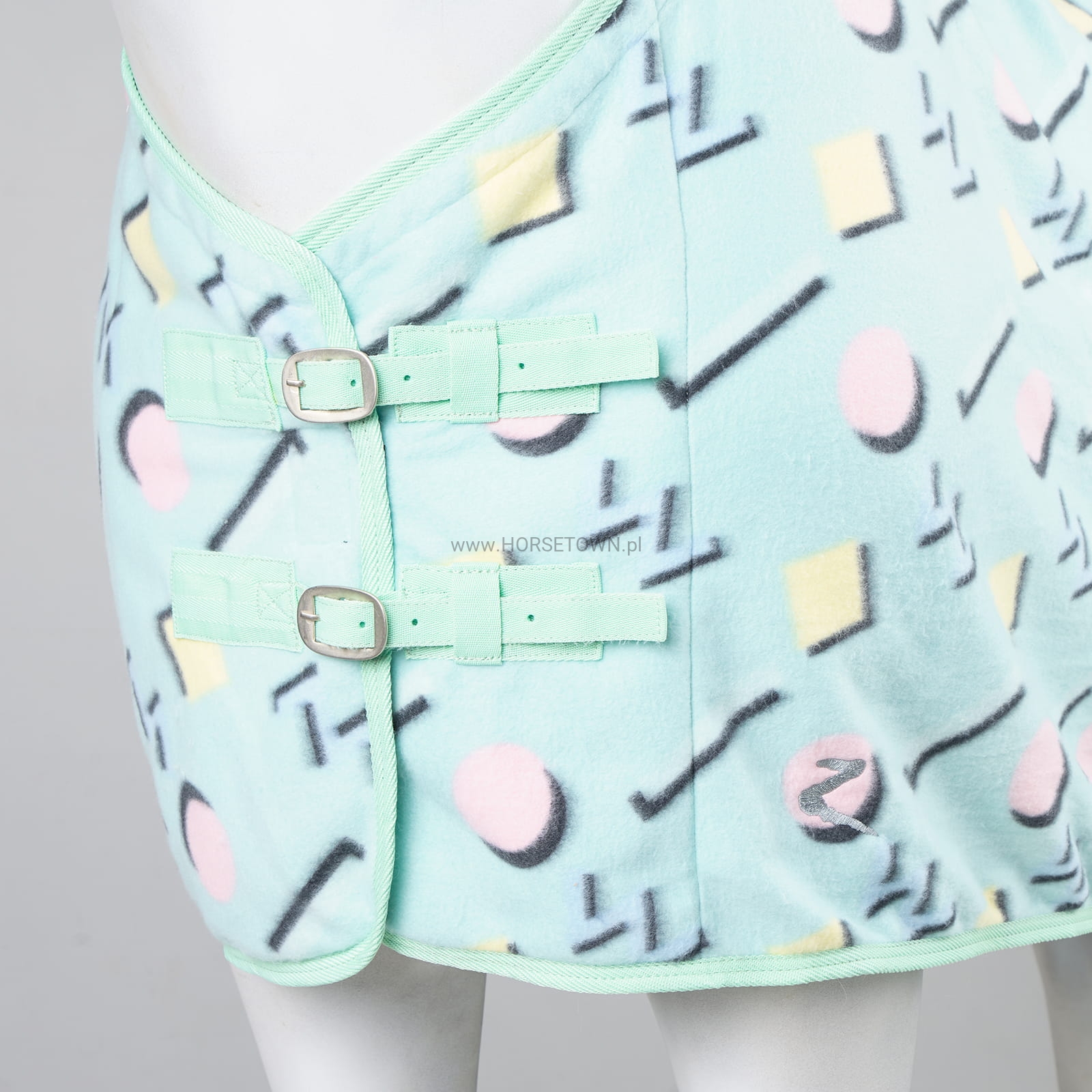 Ta dobrze dopasowana derka wykonana jest z miękkiej, polarowej tkaniny. Zaprojektowana z unikalnym nadrukiem w stylu retro, w pastelowych kolorach, sprawi, że Twój koń stanie się gwiazdą stajni i doda barw do jego wyglądu. Funkcjonalne zapięcie z przodu, pasy krzyżowe i klapa na ogon utrzymują derkę na swoim miejscu.