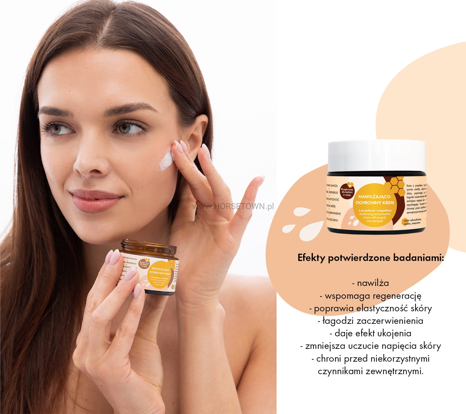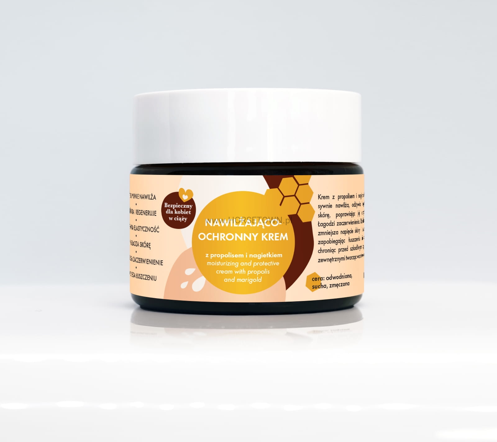 Cudownie nawilżający krem do twarzy na bazie propolisu i nagietka. Propolis znany jest ze swoich mocnych właściwości regenerujących, a w medycynie ludowej nazywany jest "naturalnym antybiotykiem". Nagietek natomiast ceniony jest za swoje działanie łagodzące i nawilżające. Wspomaga proces gojenia się podrażnień czy drobnych ran. Dodatek gliceryny i naturalnych emolientów sprawia, że skóra jest nawilżona i odżywiona.