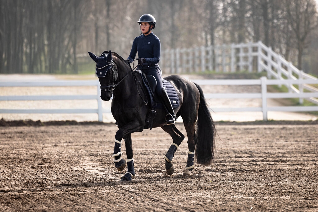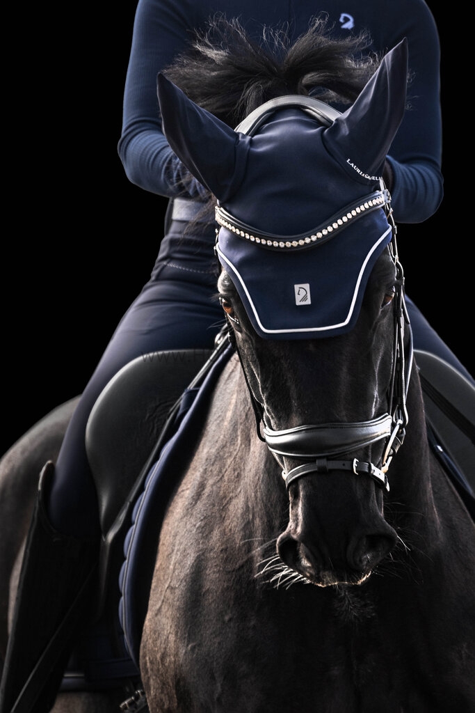 Nauszniki dla konia Lauria Garrelli to połączenie funkcjonalności i elegancji, stworzone z myślą o komforcie i ochronie Twojego konia. Wykonane z wysokiej jakości materiału technicznego, skutecznie chronią konia przed muchami i owadami, zapewniając mu spokój i koncentrację podczas jazdy czy treningu. Elastyczne uszy gwarantują idealne dopasowanie, nie ograniczając przy tym ruchów ani nie powodując dyskomfortu. Stylowe wykończenie z metalową aplikacją Lauria Garrelli dodaje całości wyjątkowego charakteru, a precyzyjne obszycie podkreśla wysoką jakość wykonania. Nauszniki te nie tylko pełnią funkcję ochronną, ale także stanowią doskonałe uzupełnienie eleganckiego, jeździeckiego outfitu – zarówno na trening, jak i zawody.