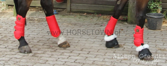 - L - ochraniacz zapinany na cztery rzepy, na tylne nogi dla dużych koni. Wysokość ochraniacza mierzona z tyłu - 27,5 cm.