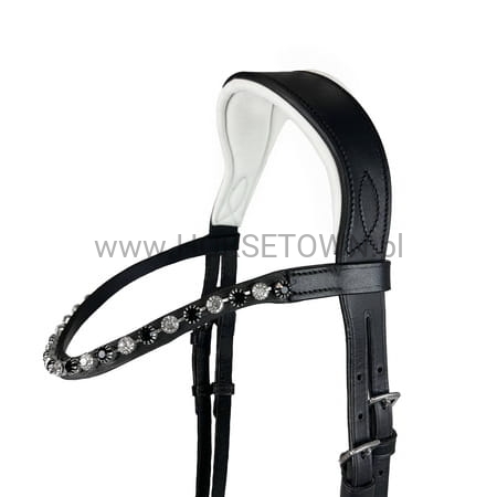• opadający naczółek z dwukolorowymi kryształkami oraz lakierowana skóra na nachrapniku nadają niepowtarzalnego charakteru