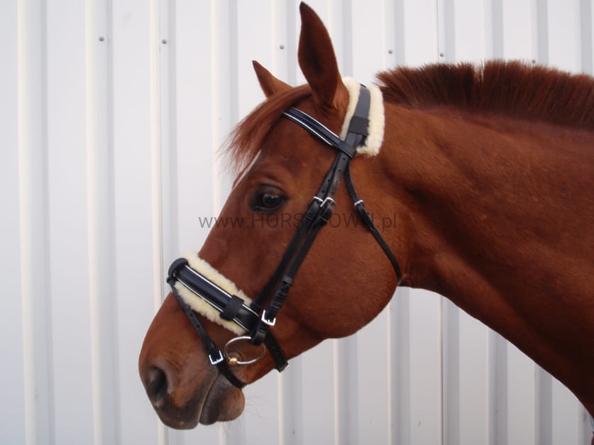 Osłona z futerka naturalnego przeciw obtarciom i odparzeniom na nachrapnik lub pasek potyliczny.