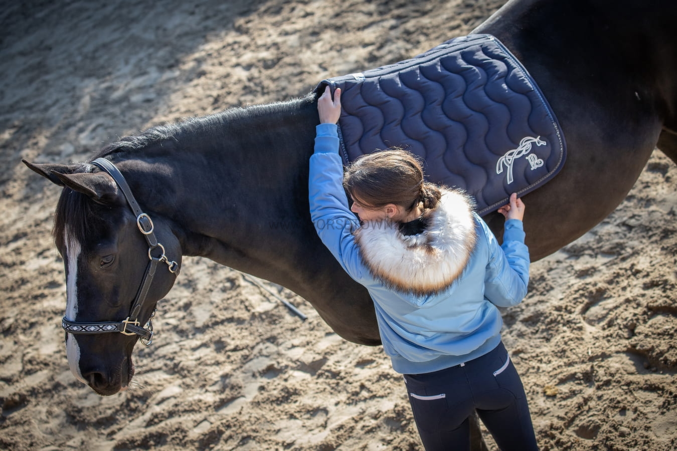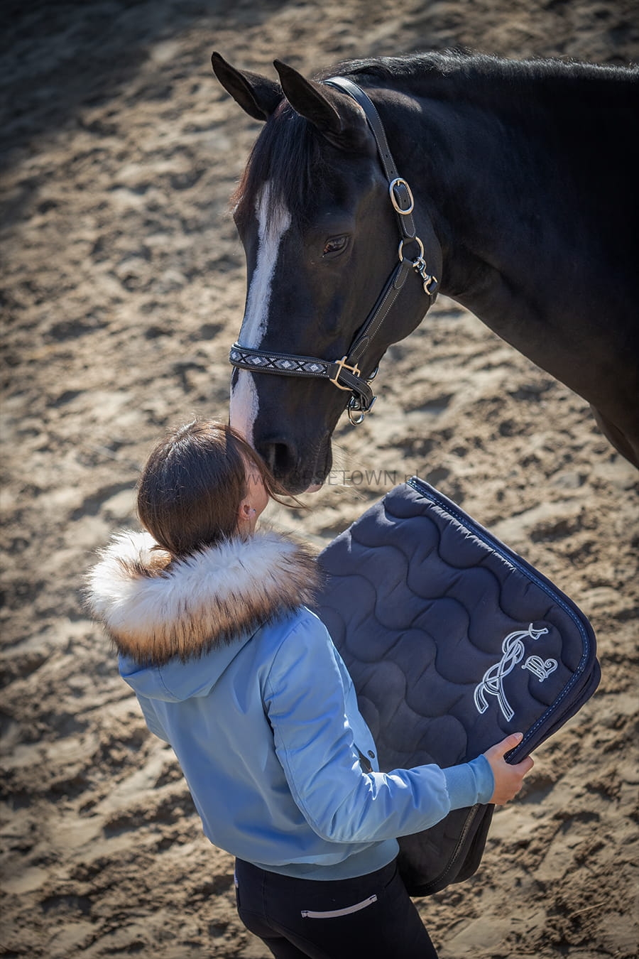 Ten czaprak to zupełnie nowy kolor . Nadal ma zwykłą linię czapraków marki. Posiada grubą wyściółkę, która chroni grzbiet konia przed wstrząsami podczas pracy. Dobrze zaprojektowana linia grzbietu zapewnia swobodę kłębu. Dwie pętle na popręg zapobiegają wsuwaniu się czapraka pod siodło podczas ruchu. Bardzo wygodny dla konia czaprak posiada białą wyściółkę o strukturze plastra miodu, która umożliwia cyrkulację powietrza, wchłania i zapobiega nadmiernemu poceniu się.