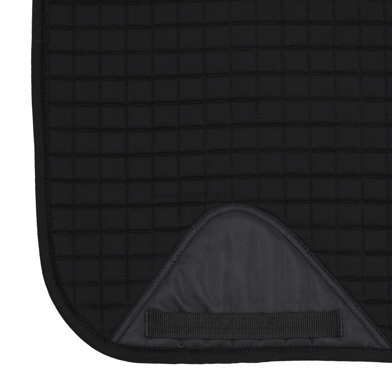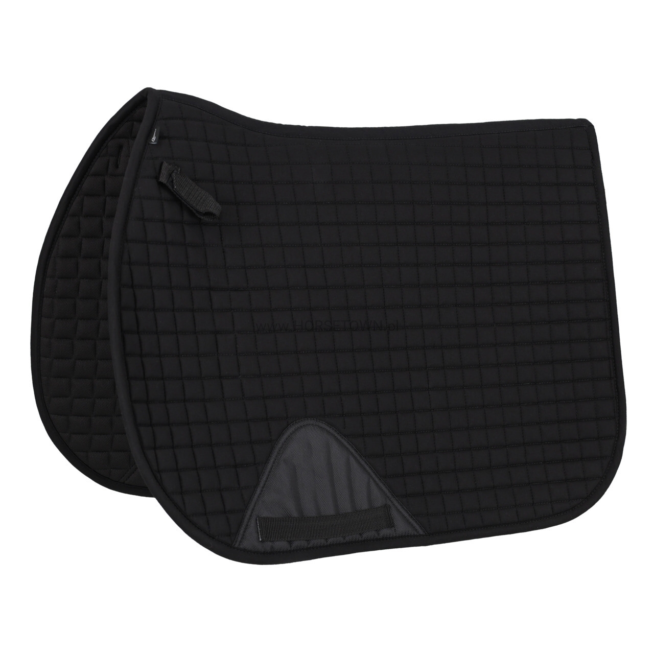 Czaprak wyposażony jest w krótkie paski do kółek D oraz pętle popręgu z zapięciem na rzep, które zapewniają stabilne ułożenie pod siodłem.