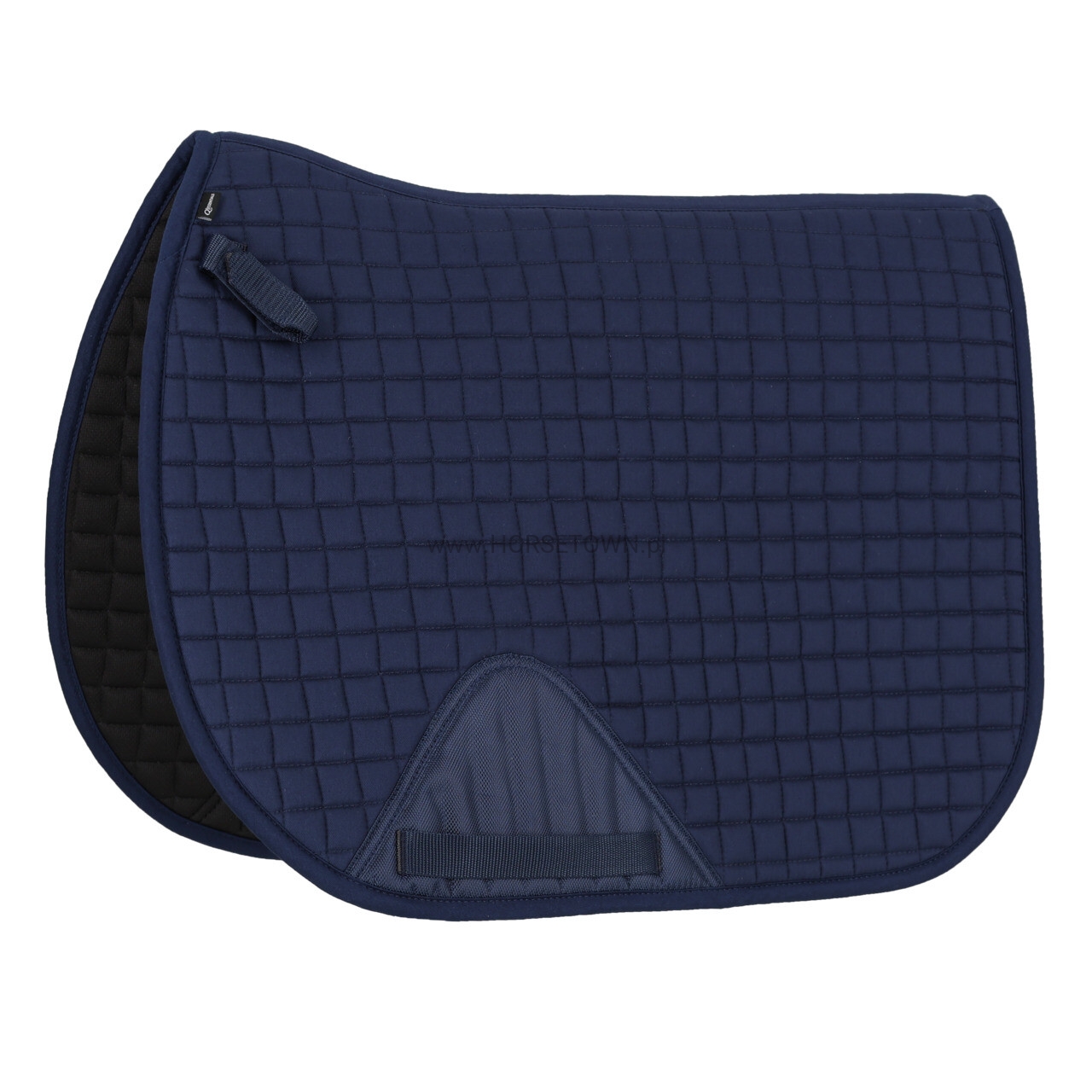 Czaprak wyposażony jest w krótkie paski do kółek D oraz pętle popręgu z zapięciem na rzep, które zapewniają stabilne ułożenie pod siodłem.
