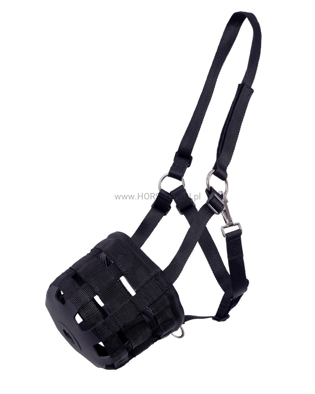 Niektóre konie mogą jeść tylko ograniczoną ilość trawy z powodu otyłości lub powodów medycznych. Ten kaganiec do wypasu pozwala na swobodne poruszanie się po pastwisku z innymi końmi, bez przejadania się.