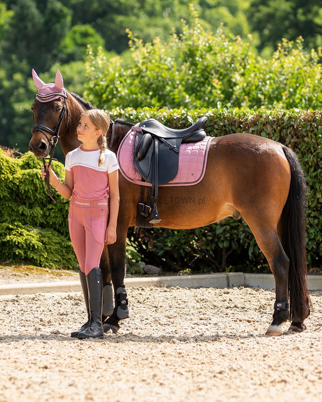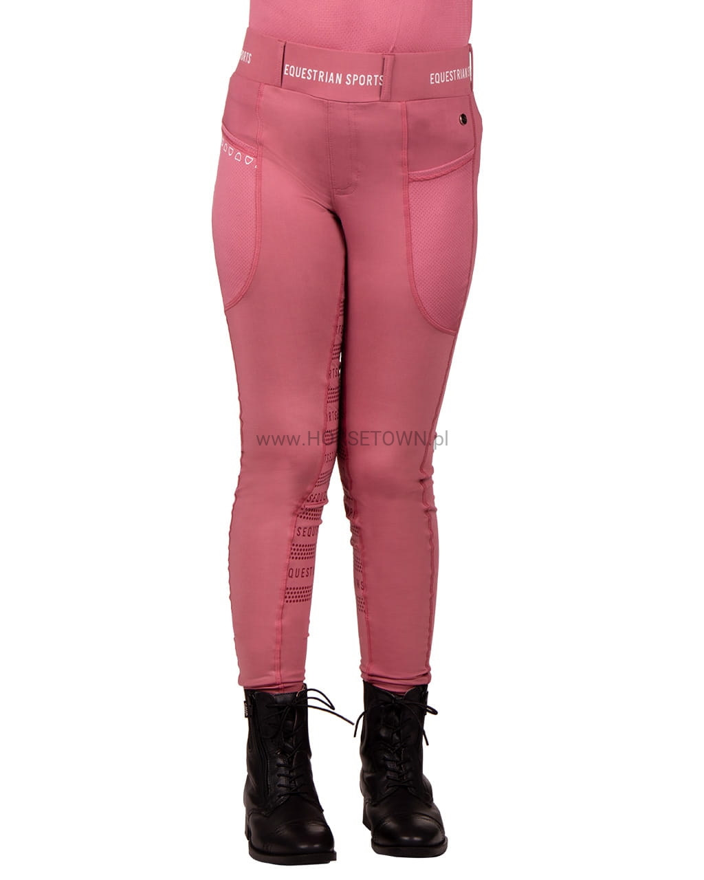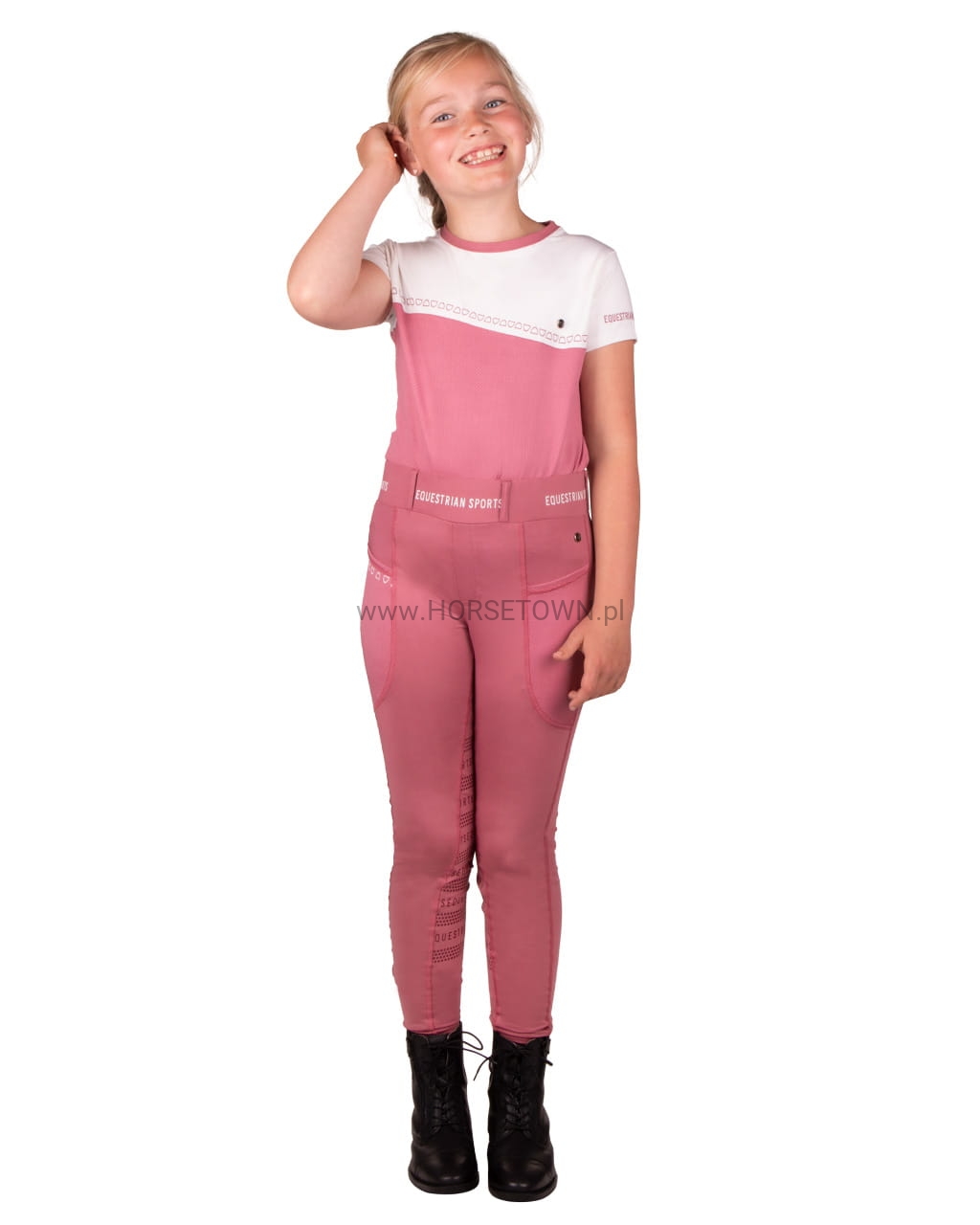 Postaw na wygodę tego lata! Jady to wygodne legginsy jeździeckie o doskonałym kroju. Te rajstopy są wykonane z elastycznego, rozciągliwego w 4 kierunkach materiału i nadają się do noszenia przez cały rok. Sportowy wygląd dopełnia pasek w połączeniu z napisem „Equestrian Sports”.
