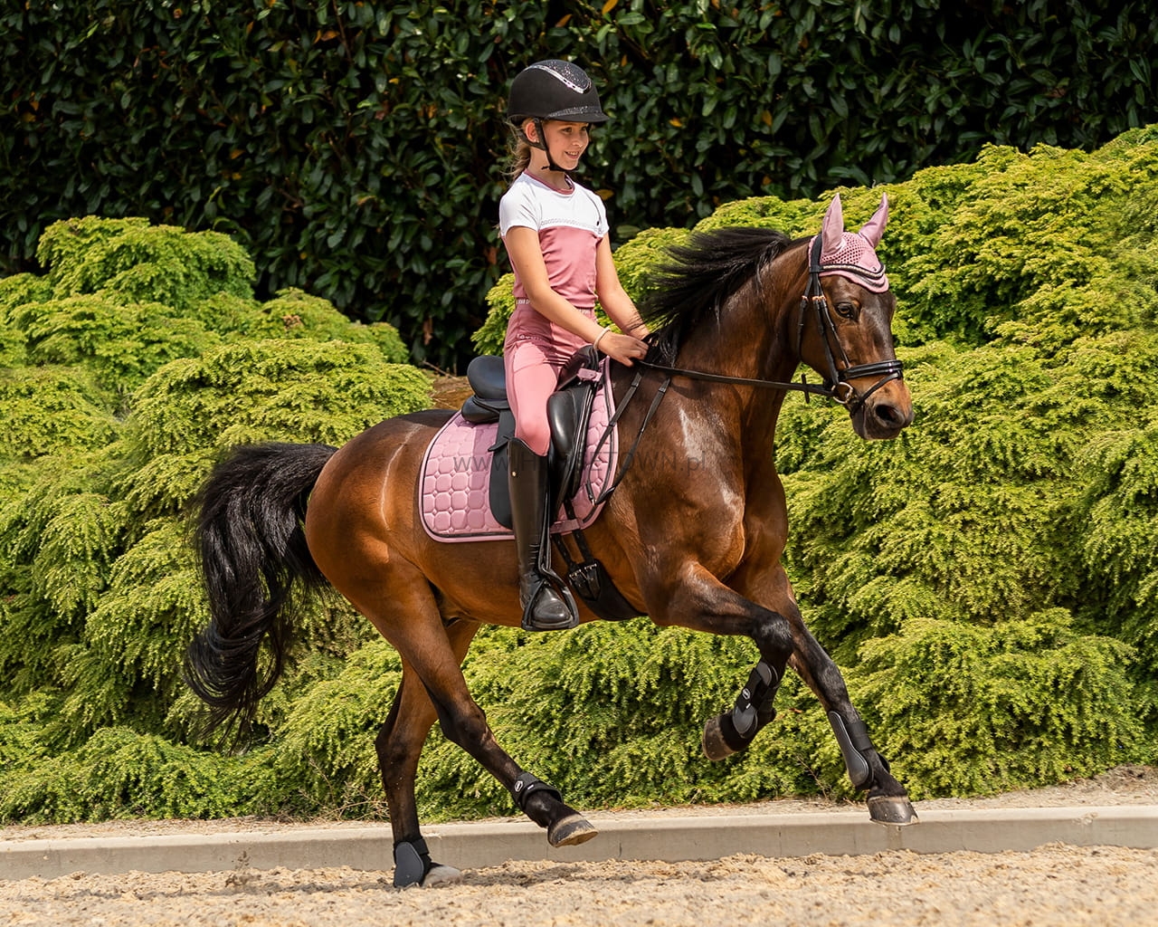 Pas ozdobiony napisem „Equestrian Sports”