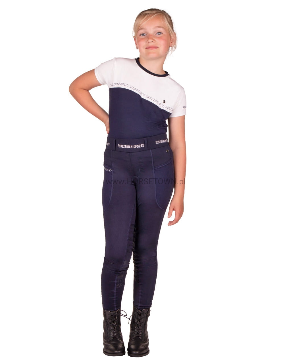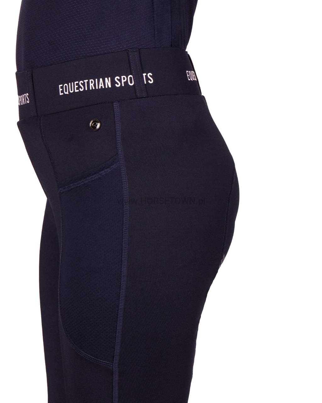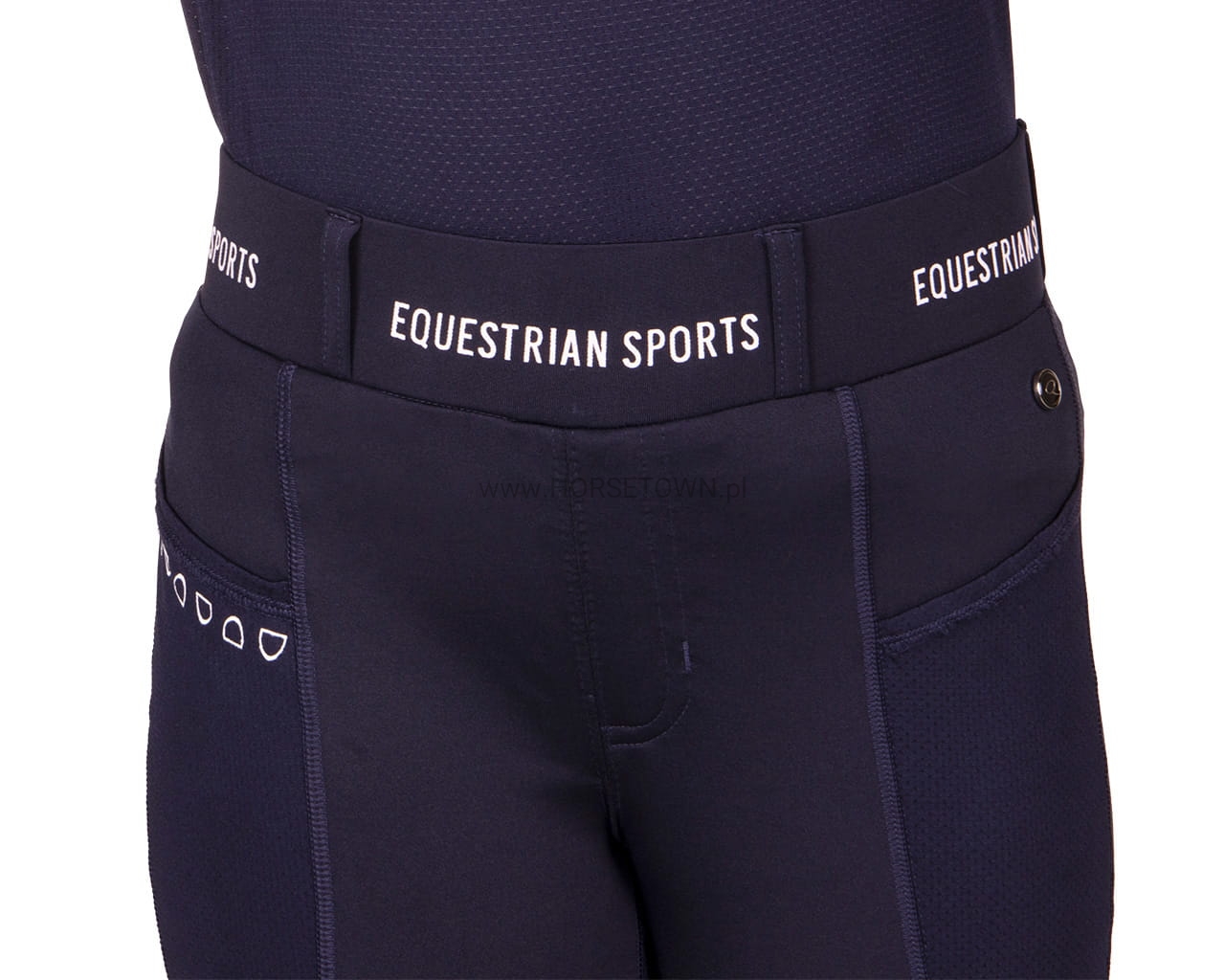 Postaw na wygodę tego lata! Jady to wygodne legginsy jeździeckie o doskonałym kroju. Te rajstopy są wykonane z elastycznego, rozciągliwego w 4 kierunkach materiału i nadają się do noszenia przez cały rok. Sportowy wygląd dopełnia pasek w połączeniu z napisem „Equestrian Sports”.