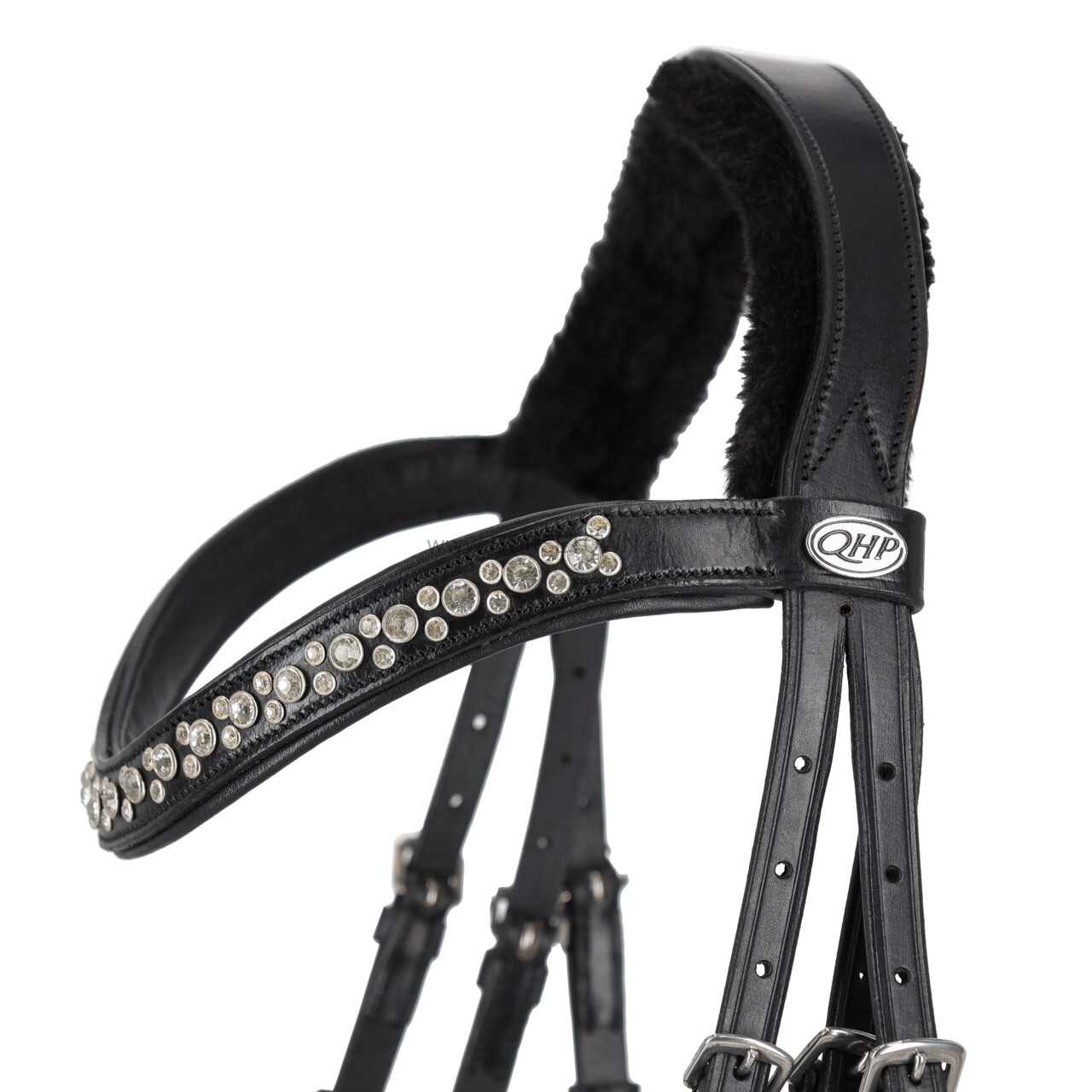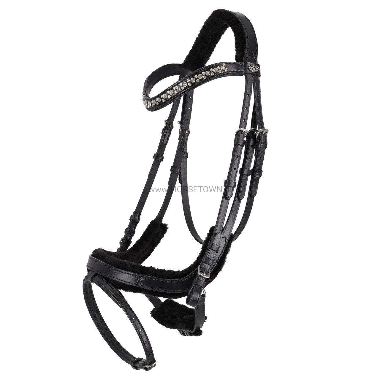 Model wyposażony jest w odpinaną i pralną podszewkę z syntetycznego futerka umieszczoną pod nachrapnikiem, naczółkiem oraz w okolicy zapięcia nachrapnika. Specjalnie wyprofilowany nachrapnik oraz lekko cofnięty nagłówek pozostawiają wrażliwe obszary głowy wolne od ucisku. Falisty naczółek nadaje całości elegancki wygląd, a miękkie podszycia zwiększają komfort użytkowania.