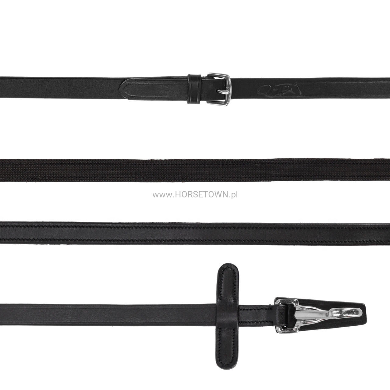 QHP Wodze anti-slip z karabińczykami black