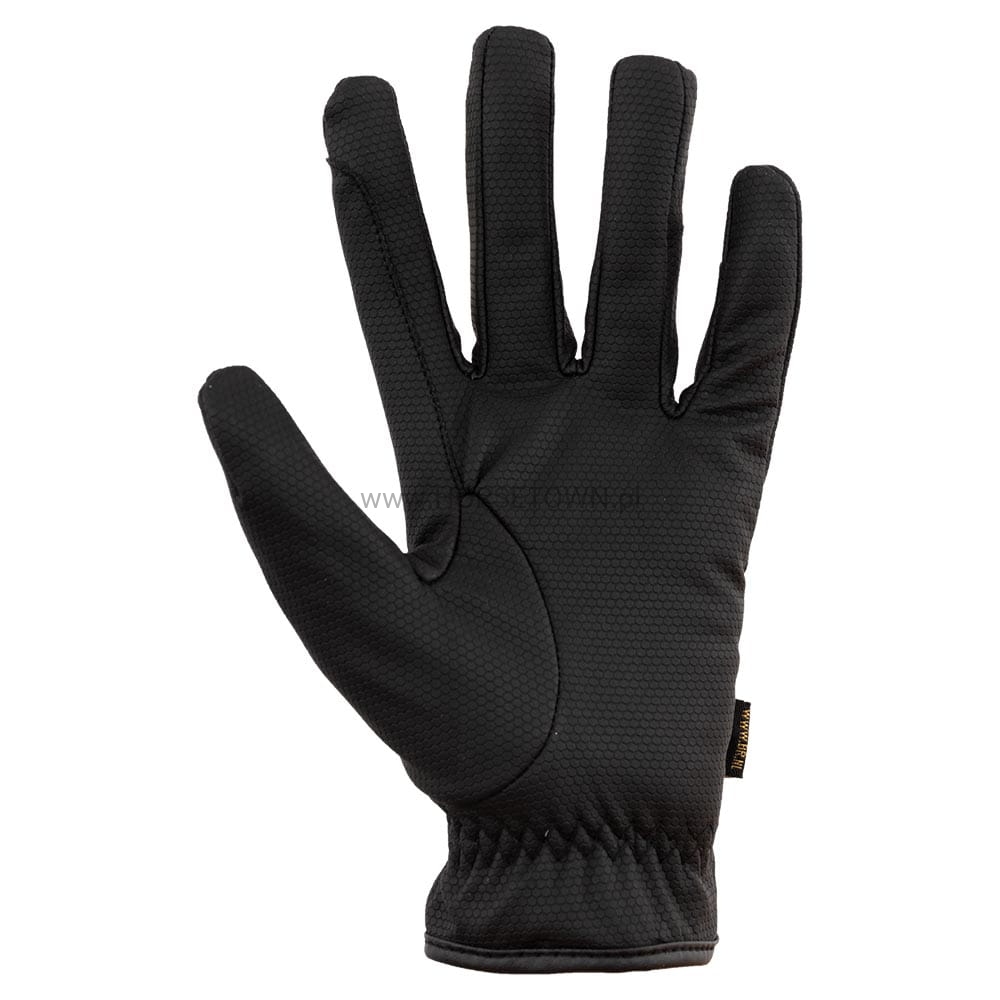 Oddychające rękawice wykonane z tłoczonego materiału syntetycznego. Polarowa podszewka zapewnia dodatkowe ciepło. Rękawica posiada wzmocnienie do trzymania wodzy. Z regulowanym zapięciem na rzep.