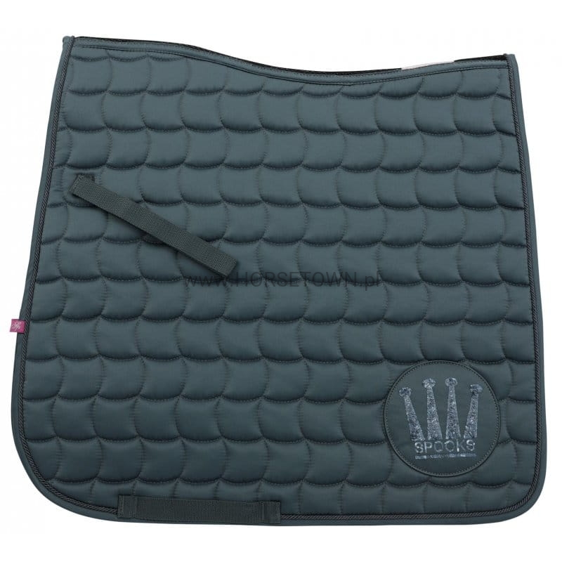 Wykonany z wysokiej jakości tkaniny poliestrowej o delikatnym połysku. Miękkie wypełnienie watowo-piankowe chroni grzbiet przed powstawaniem punktów ucisku. Anatomiczny kształt sprawia, że czaprak doskonale układa się na grzbiecie. Podszyty szybkoschnącą tkaniną, która skutecznie transportuje wilgoć na zewnątrz i ekspertowo schnie. Anatomiczna linia pleców doskonale układa się na grzbiecie nawet na mocno wykłębionych koniach. Wstawka w części kręgosłupa, wykonana z przewiewnej tkaniny Mesh, porawia cyrkulację powietrza i zwiększa parowanie. Misternie wykonane z połyskujących cekinów logo Spooks podkreśla jego unikatowość. Posiada paski dosiodła oraz szlufki do popręgu.