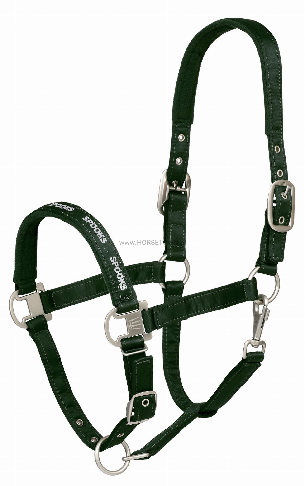 Wysokiej jakości kantar z miękkim polarem na nachrapniku i nagłowiu. Kantar Lhyon można indywidualnie dopasować za pomocą sprzączek na pasku pod brodą i nagłowiu. Okucia utrzymane są w kolorze matowego srebra. Na okuciu nachrapnika znajduje się subtelna koronka SPOOKS. Banderola z logo SPOOKS z błyszczącym brokatowym nadrukiem na nachrapniku dopełnia projekt kantara. Dołączona lina ołowiana ma elegancką naszywkę z logo SPOOKS i sprawia, że zestaw naprawdę przyciąga wzrok na koniu.