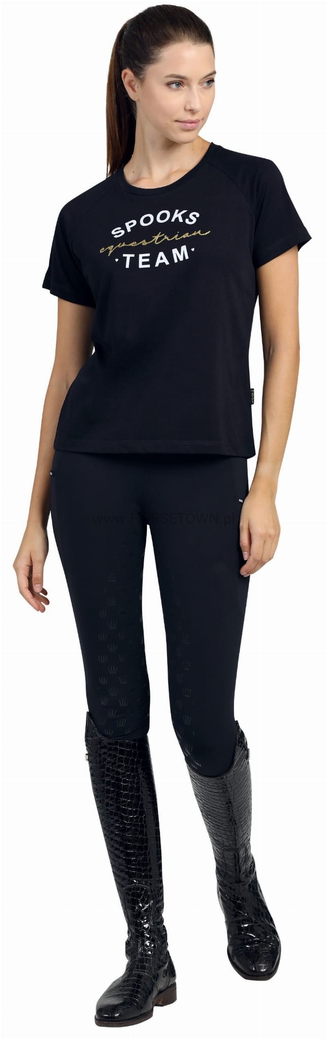 Koszulka Juhlia jest doskonałym towarzyszem dla wszystkich fanów zdrowia. T-shirt przyciąga wzrok prostymu nadrukowi SPOOKS ze złotymi detalami z przodu, lekki materiał jest przyjemny i miękki dla skóry. Koszulka ma swój krój, dzięki czemu idealnie komponuje się z szortami w upalne letnie dni.