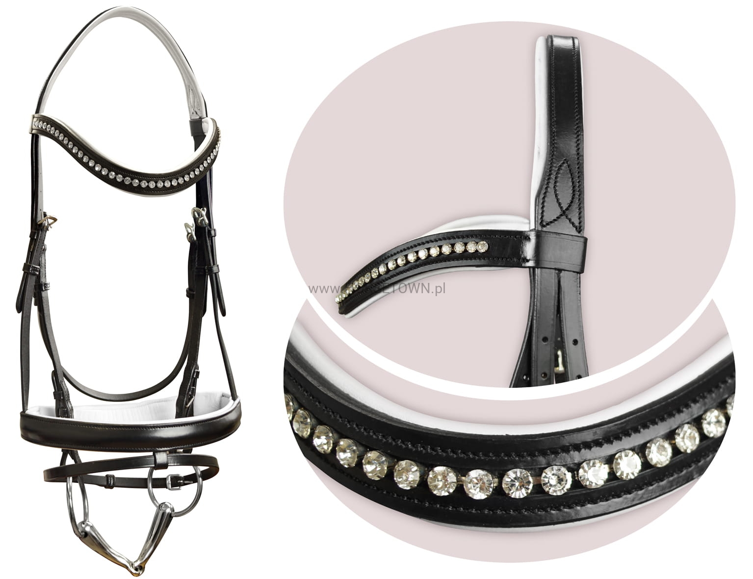 • posiada opadający naczółek ozdobiony kryształkami oraz nachrapnik typu szwedzkiego