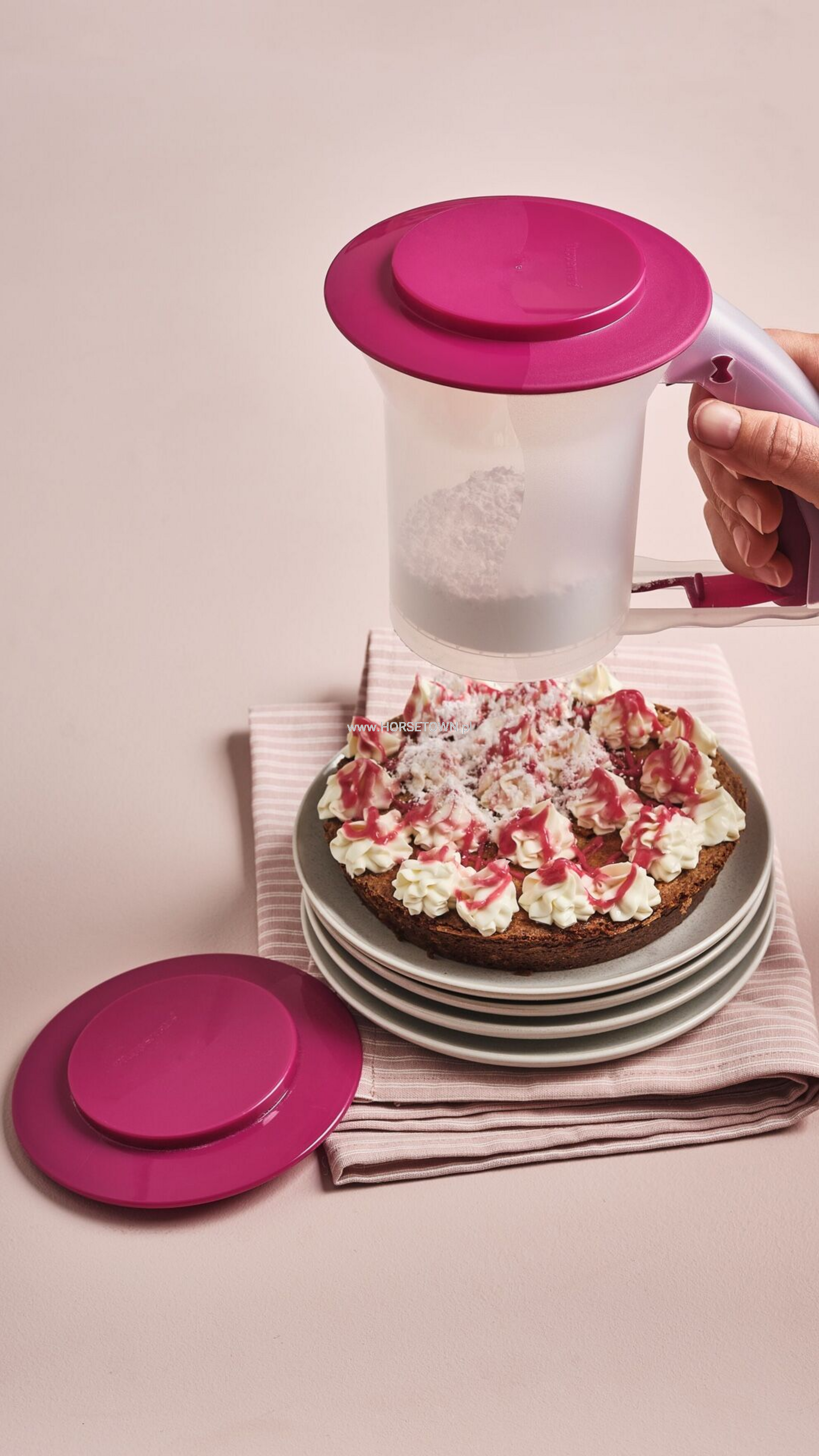 Łatwe posypywanie i przesiewanie sypkich produktów (mąki, cukru pudru, kakao, mąki kukurydzianej itp.).