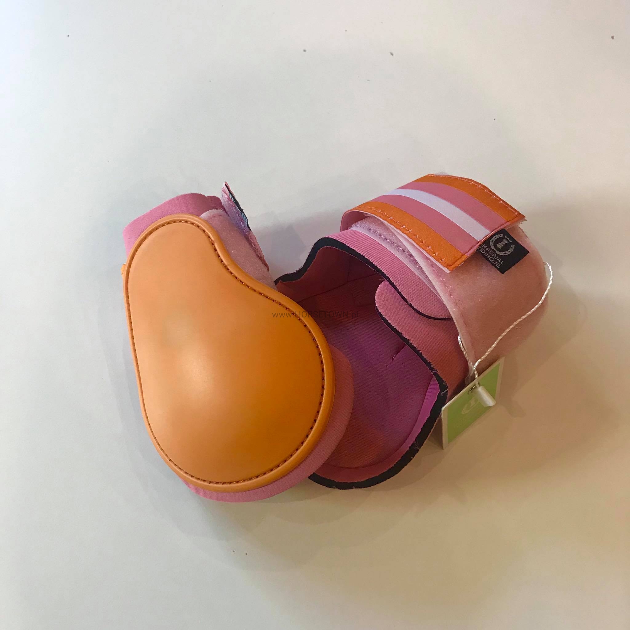 Pomarańczowe tylne ochraniacze skorupy firmy Imperial Riding, podszyte neoprenem w kolorze różowym. Rozmiar FULL