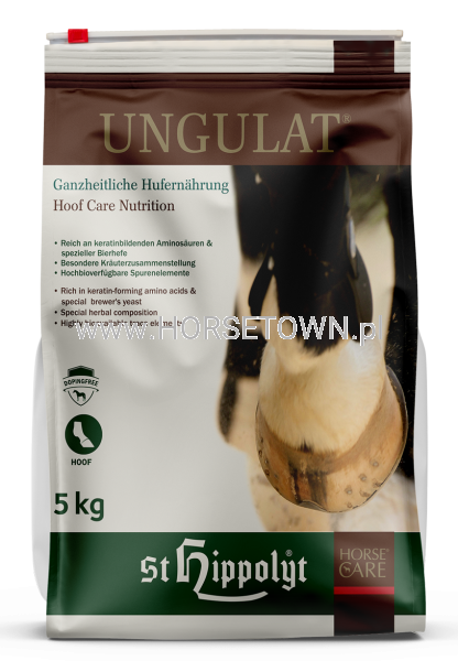 Ungulat został stworzony w oparciu o najnowsze osiągnięcia z dziedziny dietetyki. Jest stale ulepszany aby zapewnić najwyższą różnorodność składników odżywczych stanowiących solidną żywieniową podstawę dla rozwoju i wzrostu zdrowych oraz silnych kopyt- nawet w trudnych przypadkach.