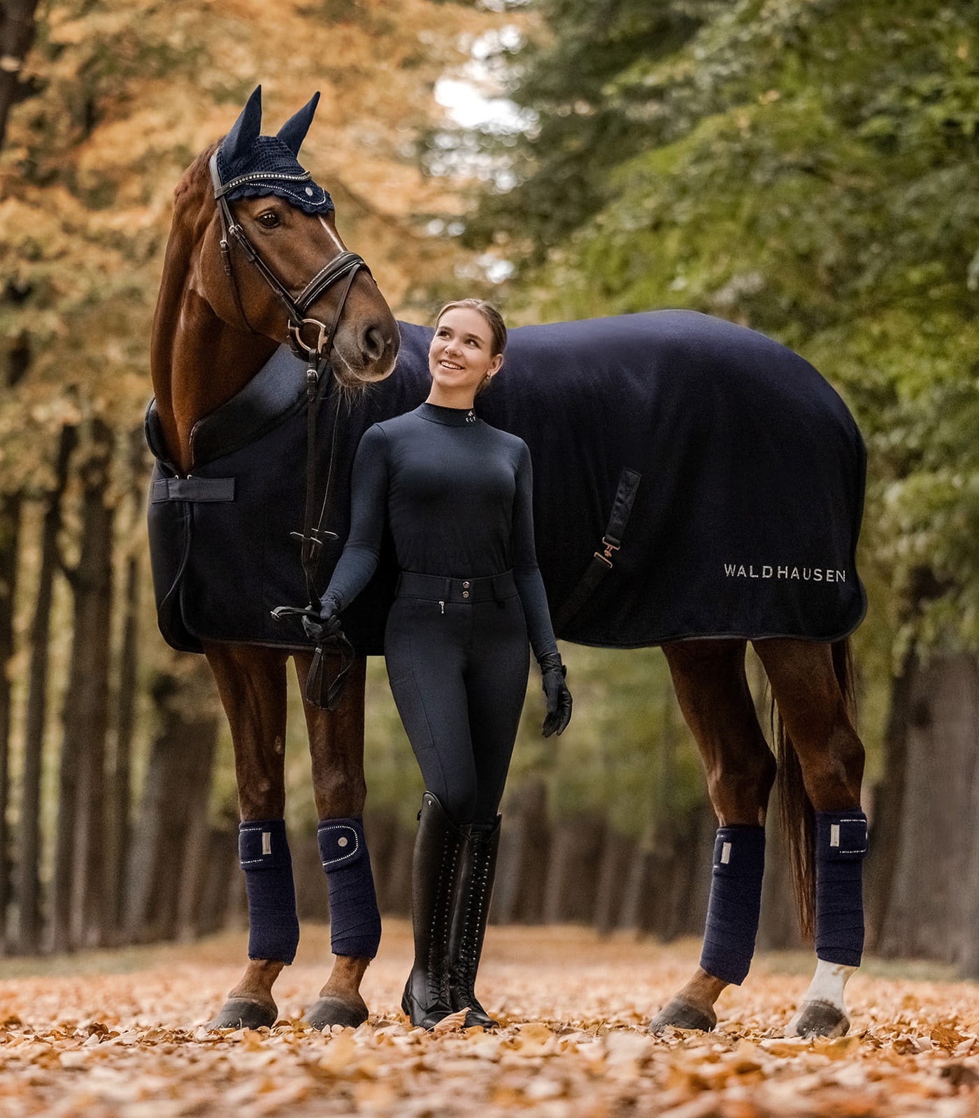 Elegancka derka polarowa z miękko wyściełanym kołnierzem w kłębie i szyi. Derka polarowa wykonana jest z wysokiej jakości polaru zapobiegającego mechaczeniu i zapewnia optymalną funkcję odprowadzania wilgoci. Z stonowanym ozdobnym sznurkiem i błyszczącym napisem Waldhausen.