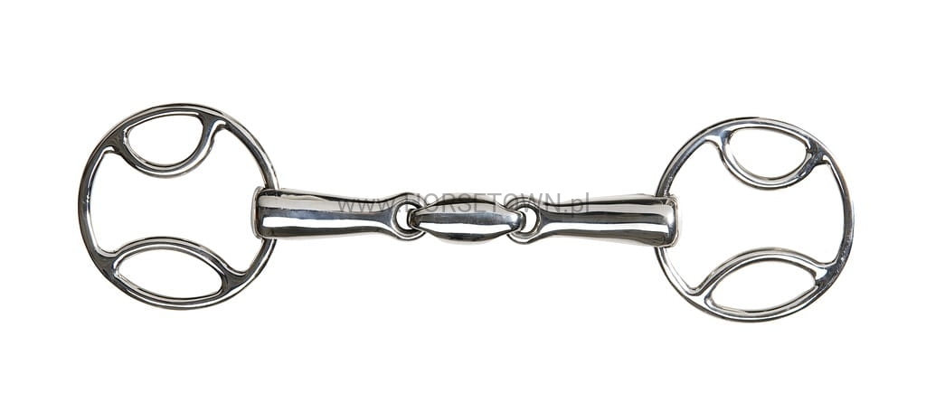 Anatomiczny kształt wędzidła i eliptyczny łącznik zapewniają delikatne oddziaływanie na pysk konia.