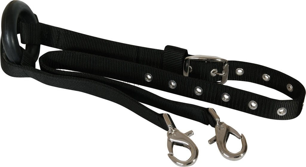 • po obu stronach znajdują się stalowe karabińczyki umożliwiające zaczepianie ich do kiełzna i siodła lub pasa do lonżowania