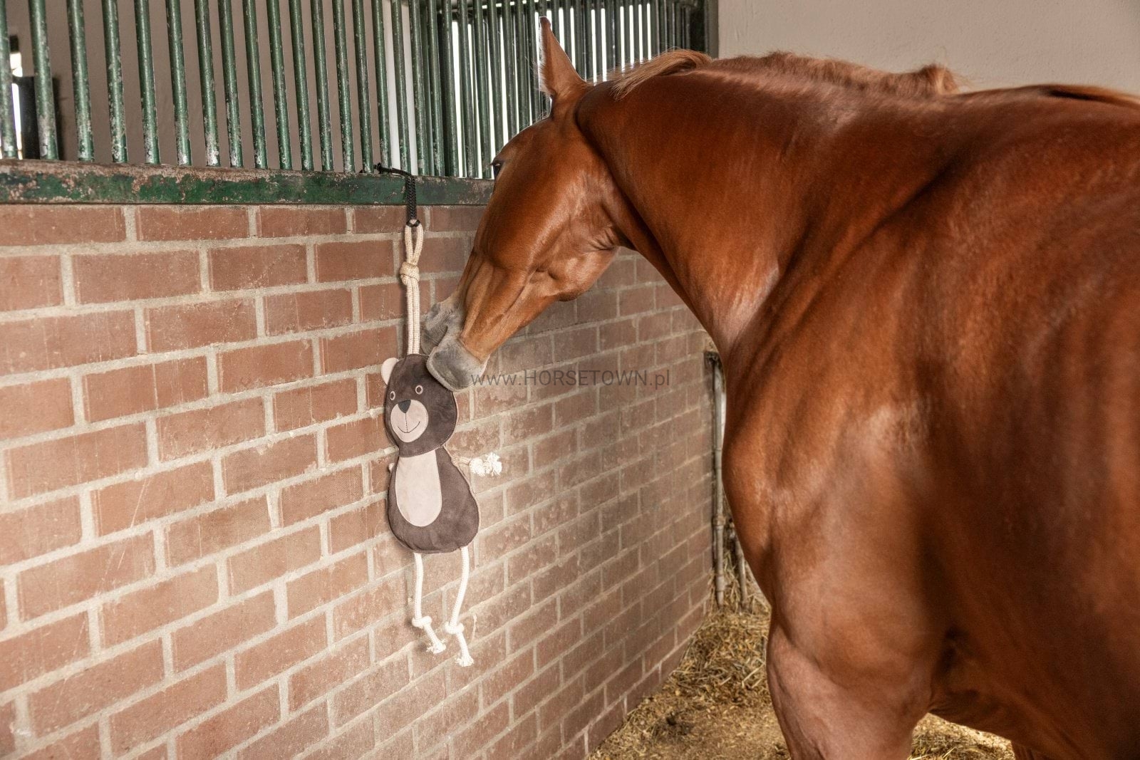 Zabawka wypełniona naturalnymi włóknami i posiadająca zamszowy pokrowiec, jest dobrą rozrywką dla koni w boksie lub w okresach ograniczonego ruchu. Doskonale sprawdza się jako materiał stymulujący aktywność źrebiąt.